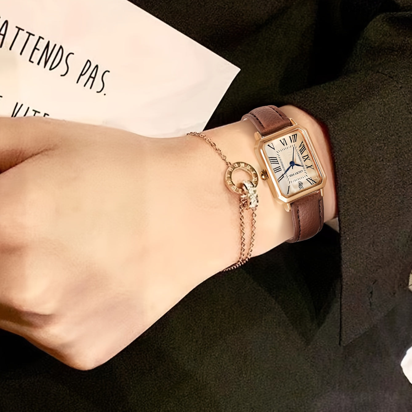 Vintage Business Watch and Bracelet Gift Set with Quartz Movement PU Leather Band Pointer Display