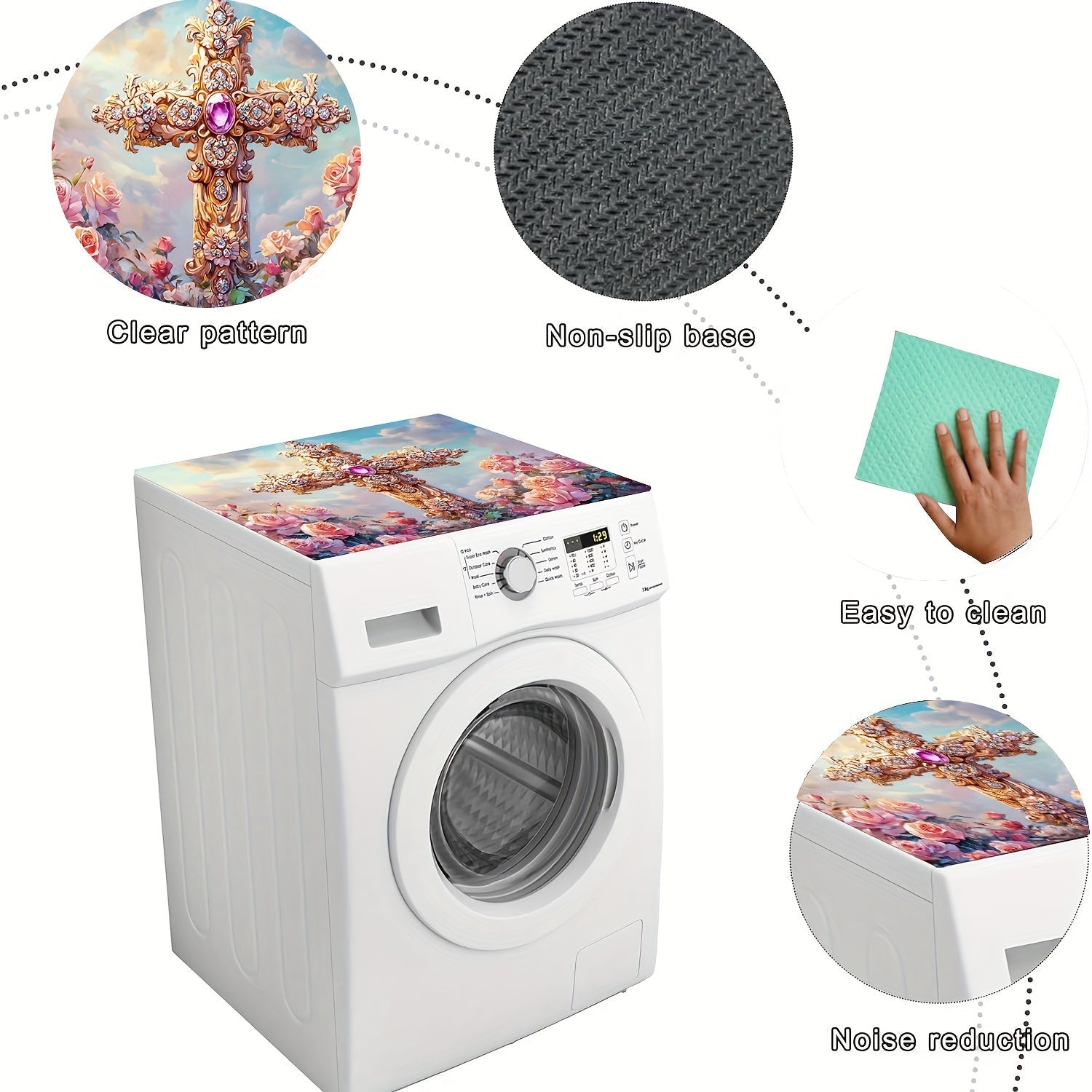 Rose Printed Washing Machine Dust Cover with Non-Slip Top Mat for Laundry Room