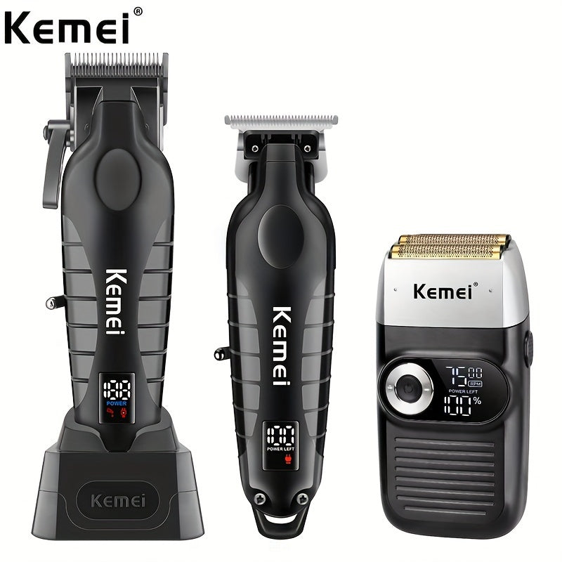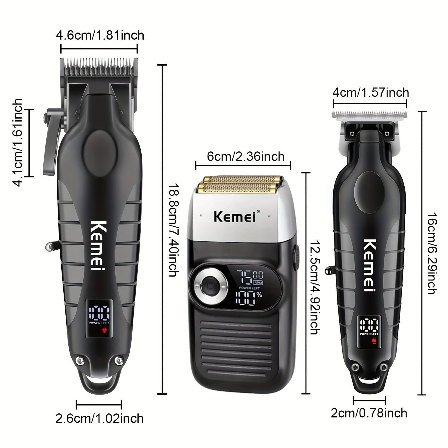 Electric Hair Clipper Set Cordless USB Rechargeable LCD Display Temperature Control for Home Salon
