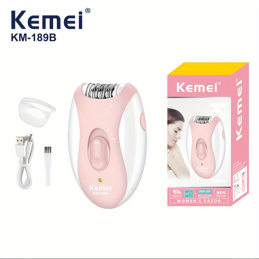 Electric Hair Removal Device Portable USB Rechargeable Epilator 5 Attachments Pink White