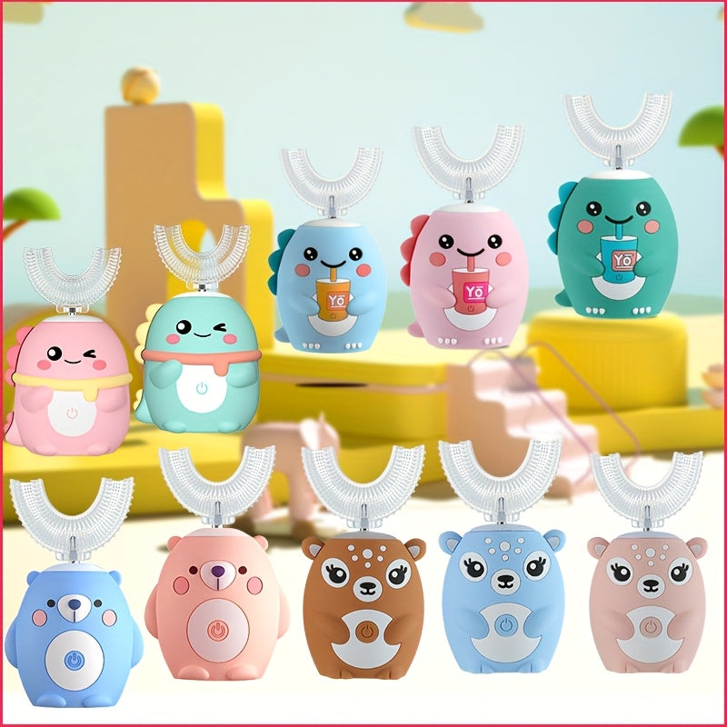 Kids Electric Toothbrush U-Shaped Dinosaur Rechargeable 59-Second Timer