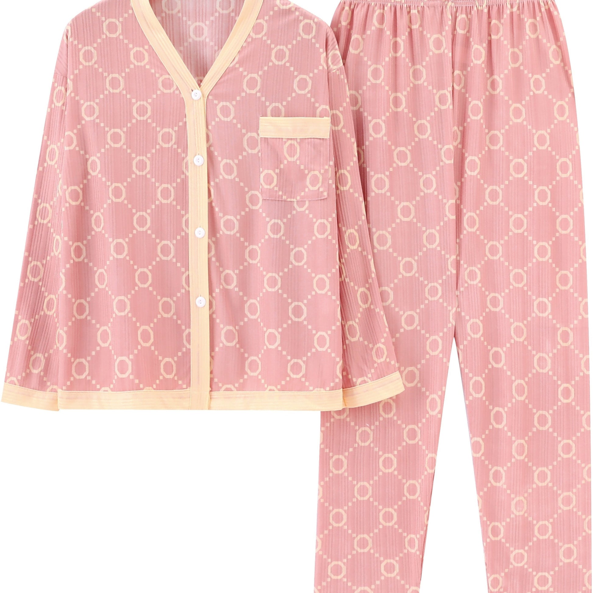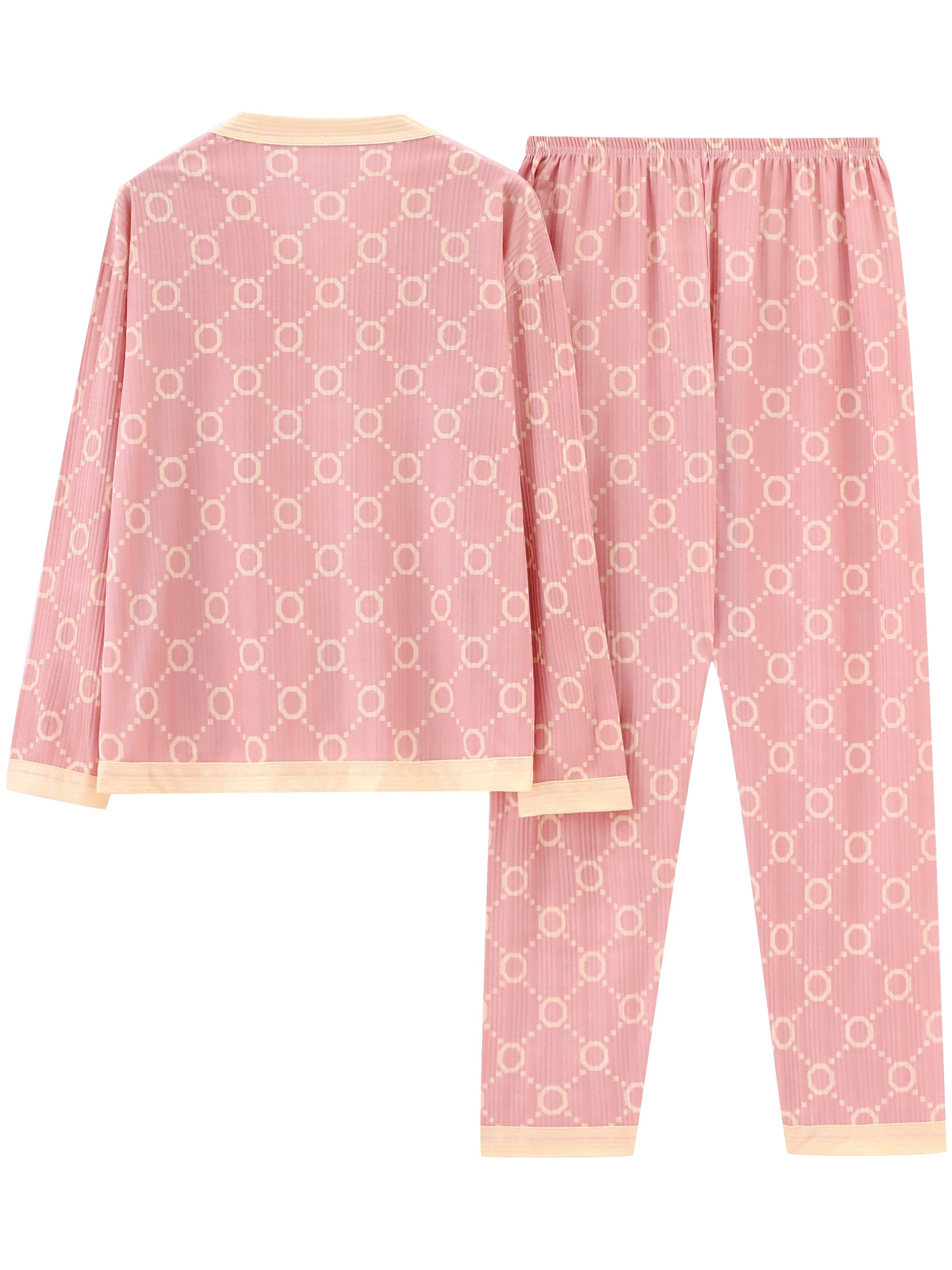Pink Spring and Autumn Pajama Set for Adults with Open Front and Long Sleeves