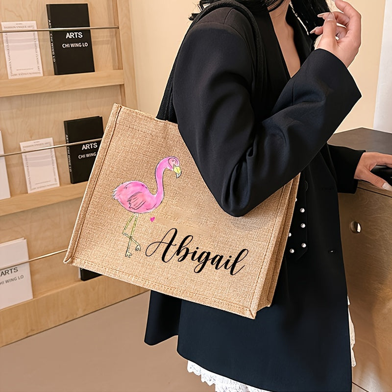 Large Flamingo Pattern Beach Bag with Monogram Tote for Summer Vacation