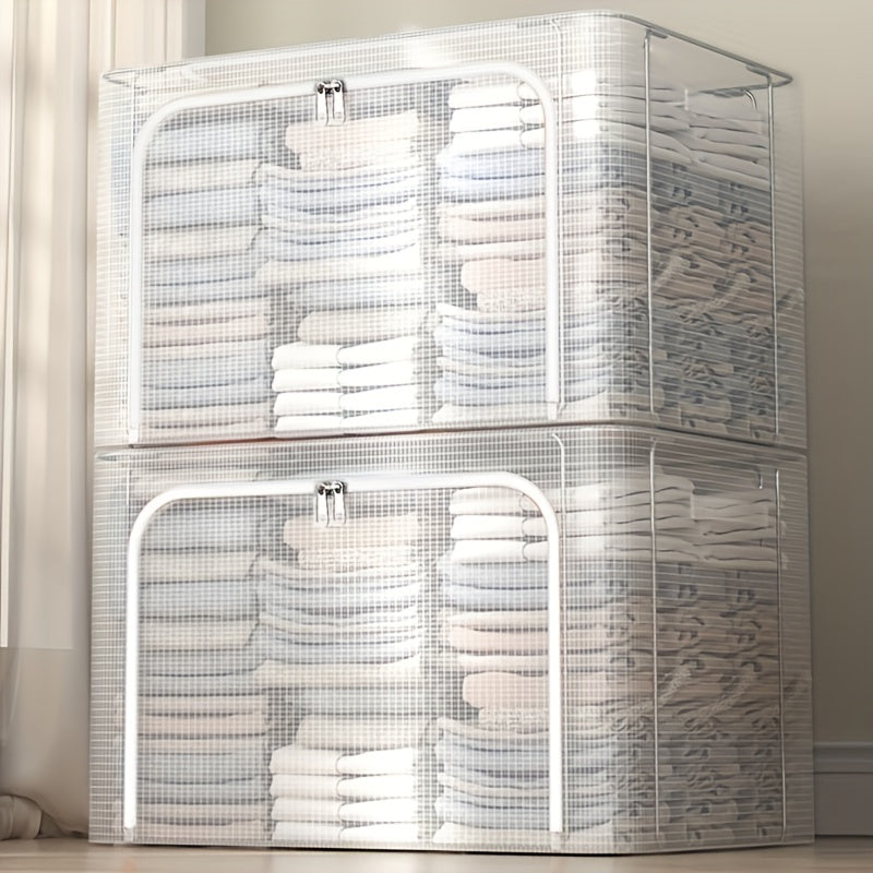 Large Capacity Clothes Storage Box with Steel Frame Waterproof Foldable Organizer for Seasonal Items