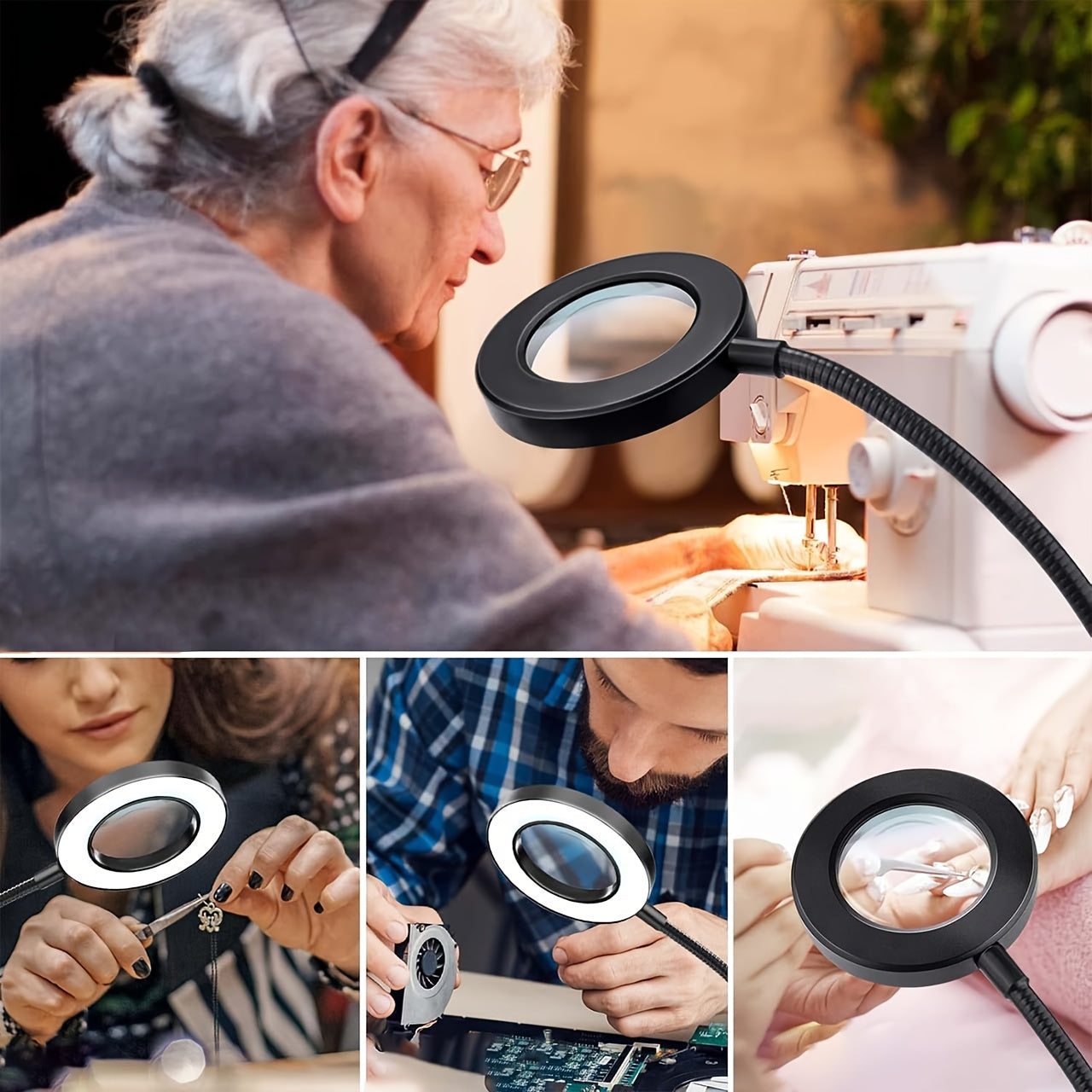 LED Desk Lamp with Eye Protection, Adjustable Brightness, Clip and Magnifying Glass for Reading and Beauty Tasks