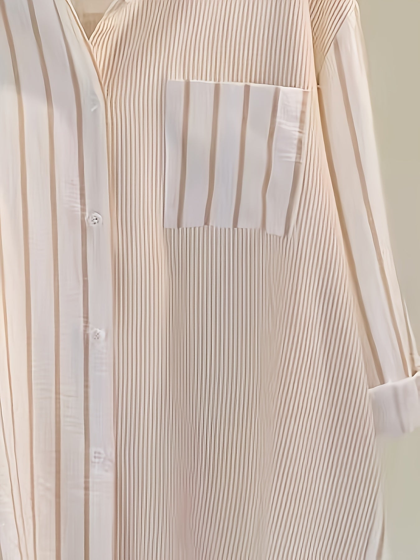 Plus Size Long Sleeve Striped Shirt Rayon Elegant Casual for Women