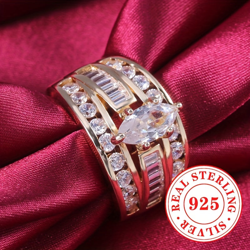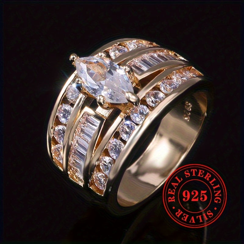 Sterling Silver Marquise Cubic Zirconia Ring for Engagement Wedding 8.8g