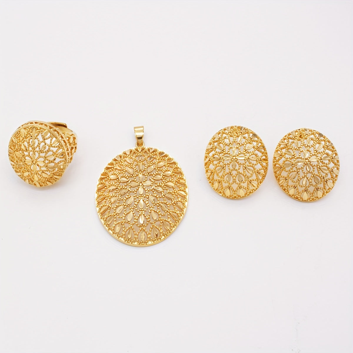 Gold-Plated Jewelry Set for Women African-Inspired Necklace Earrings Ring Gift