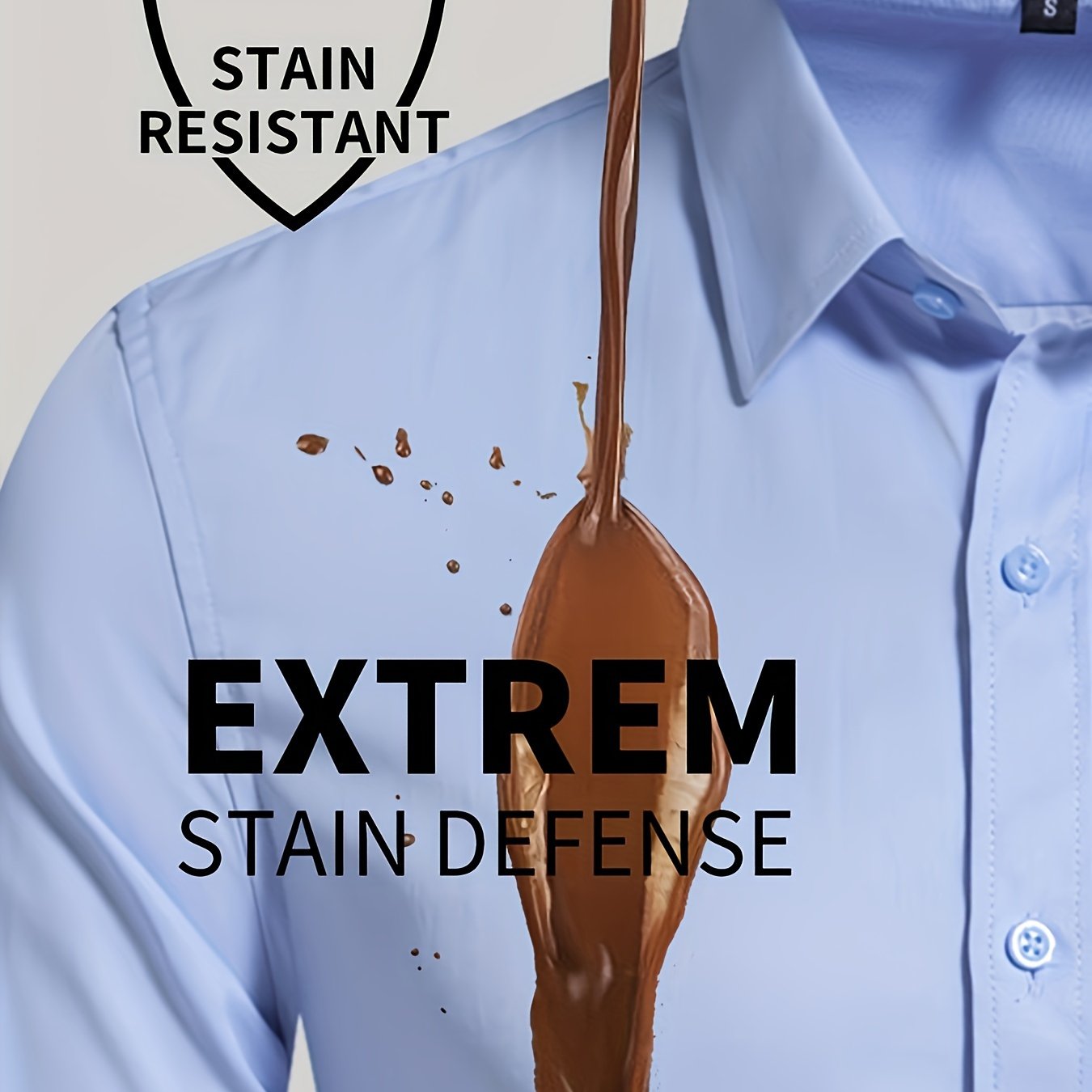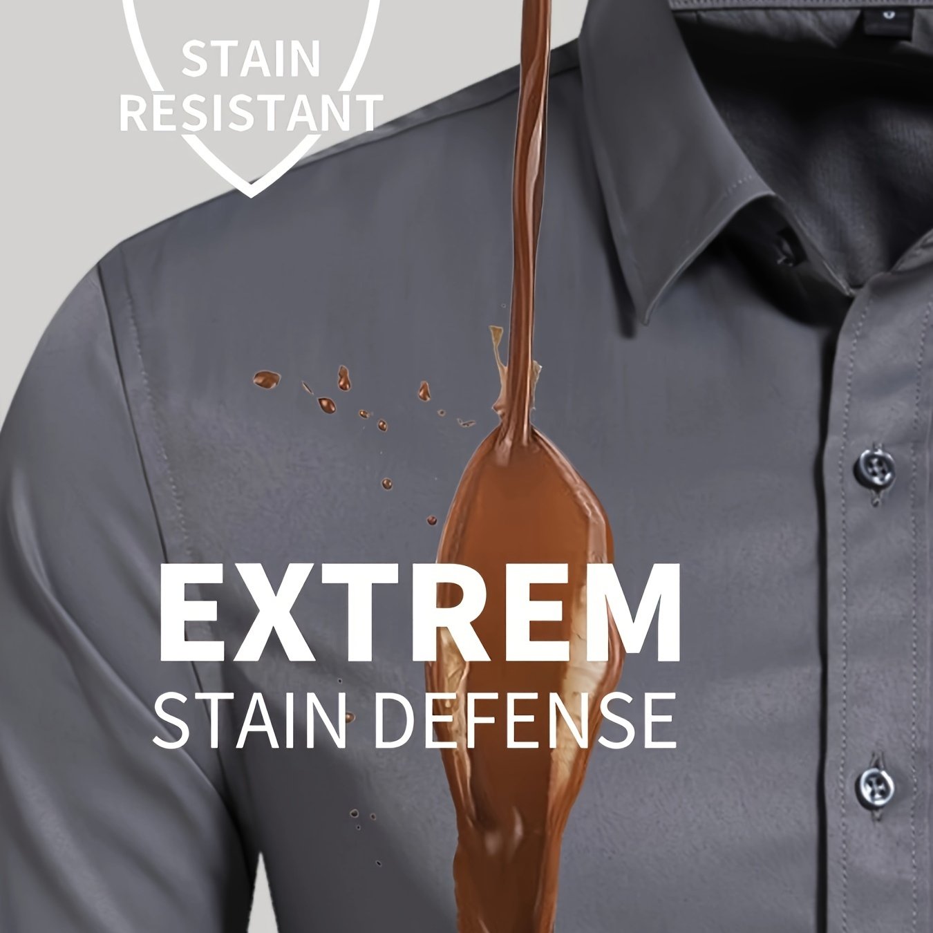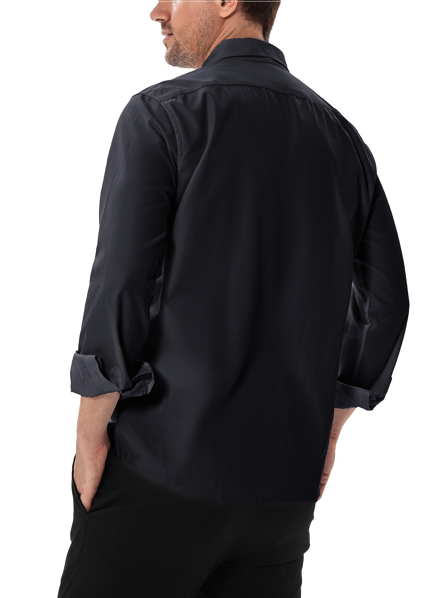 Men's All-Season Cotton-Polyester-Spandex Work Shirt Long Sleeve Lapel Button Regular Fit