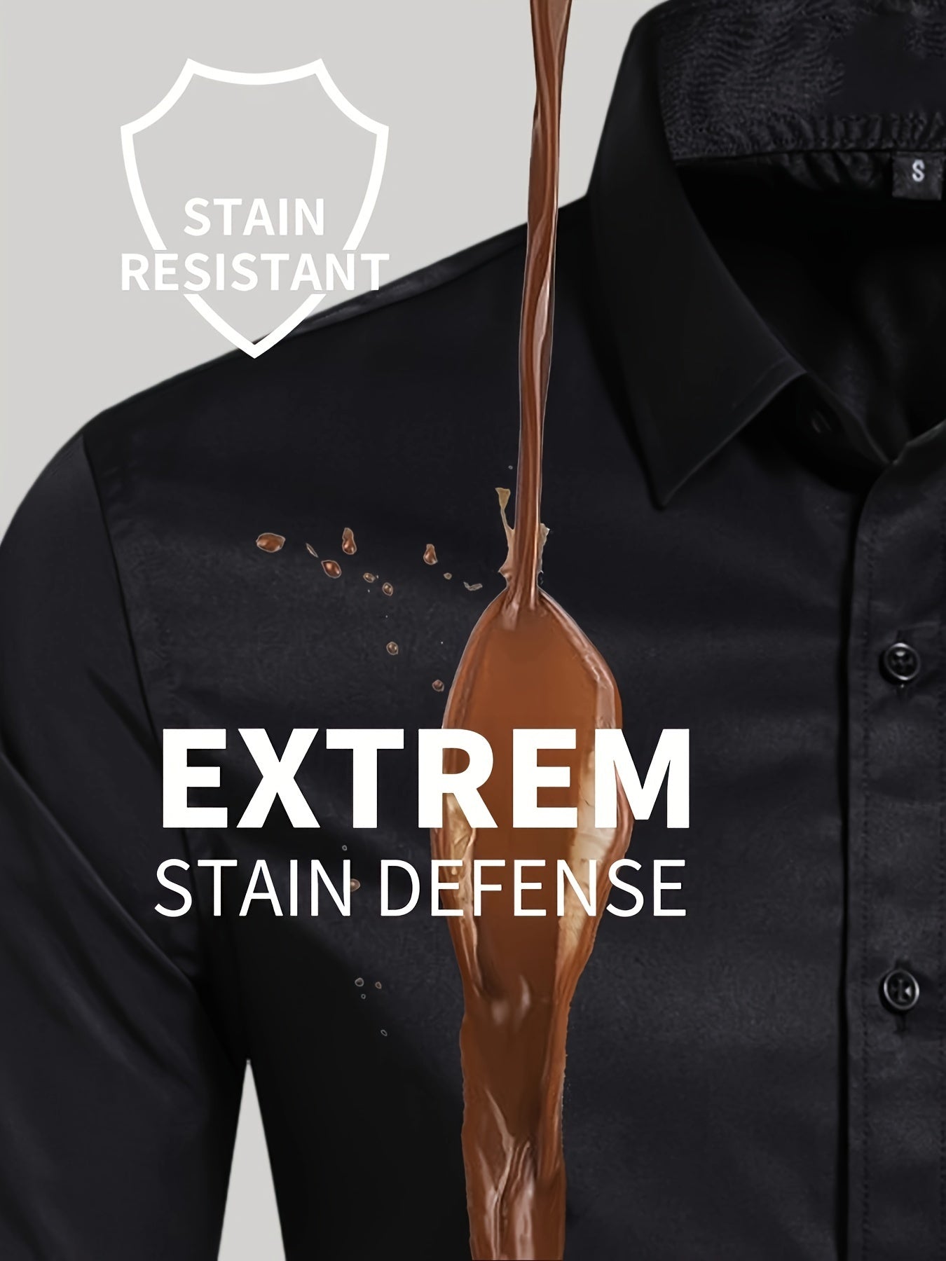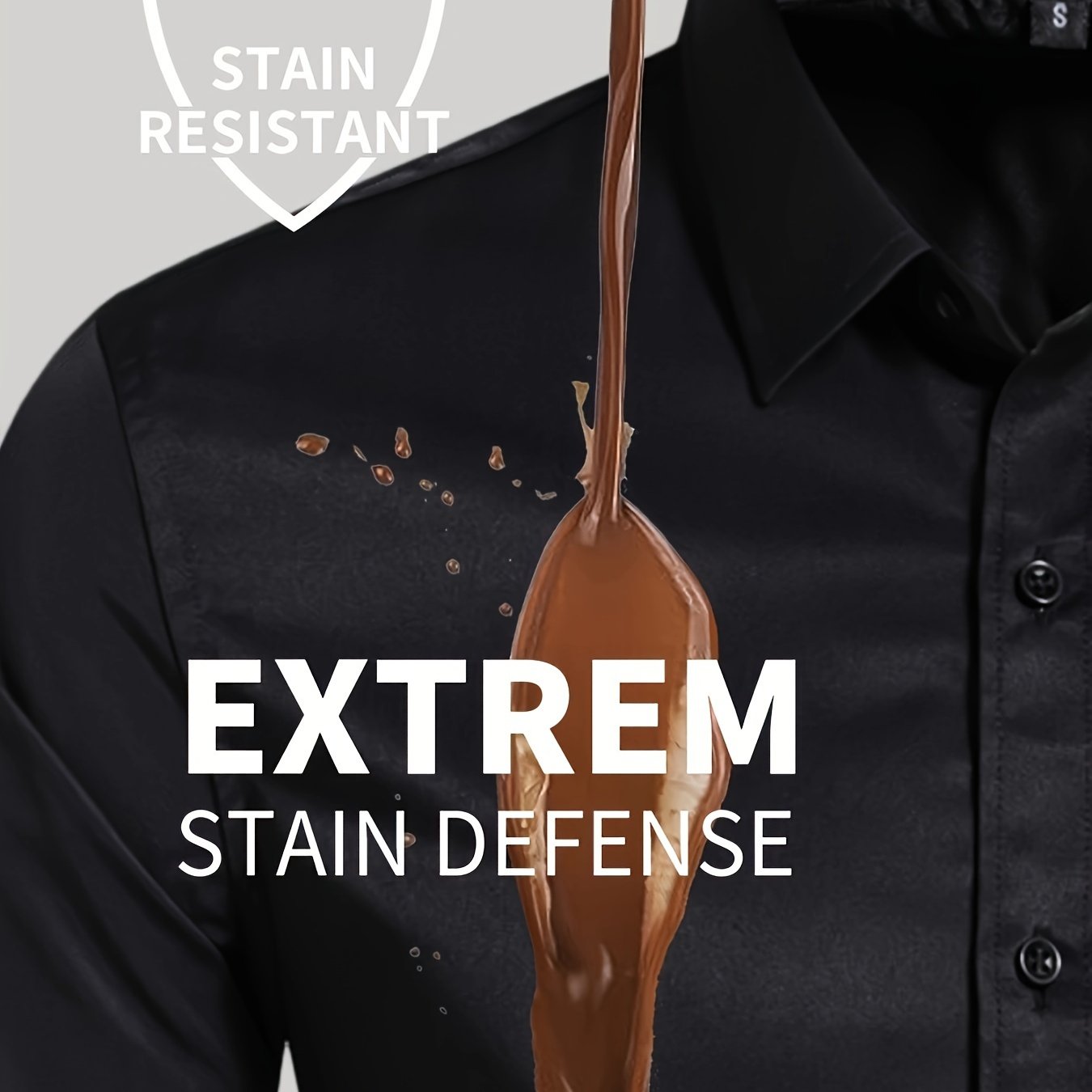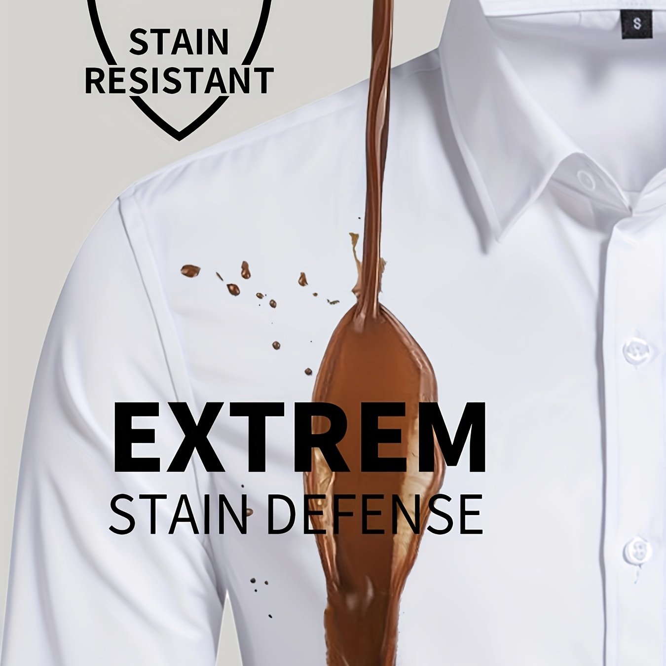 Men's All-Season Cotton-Polyester-Spandex Work Shirt Long Sleeve Lapel Button Regular Fit