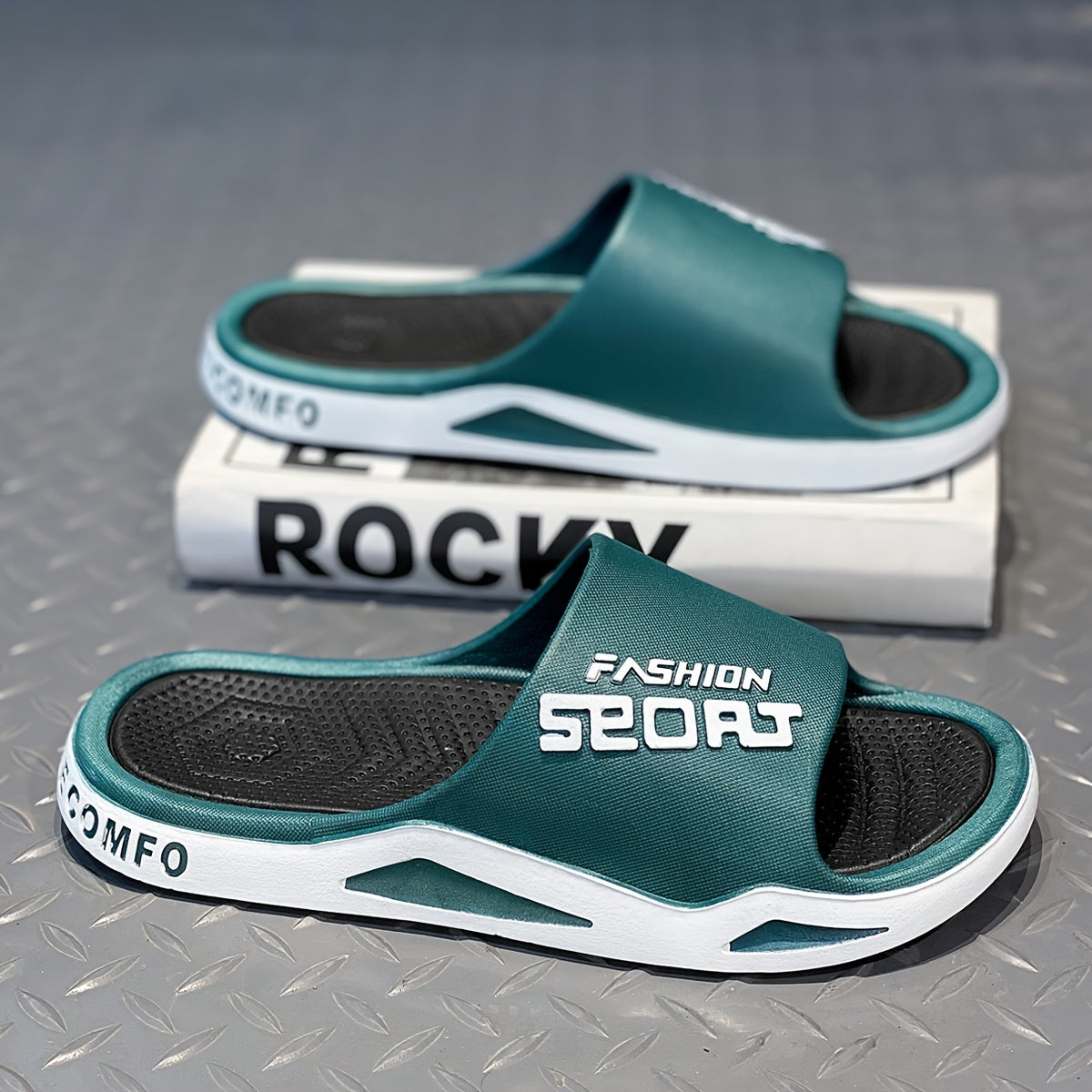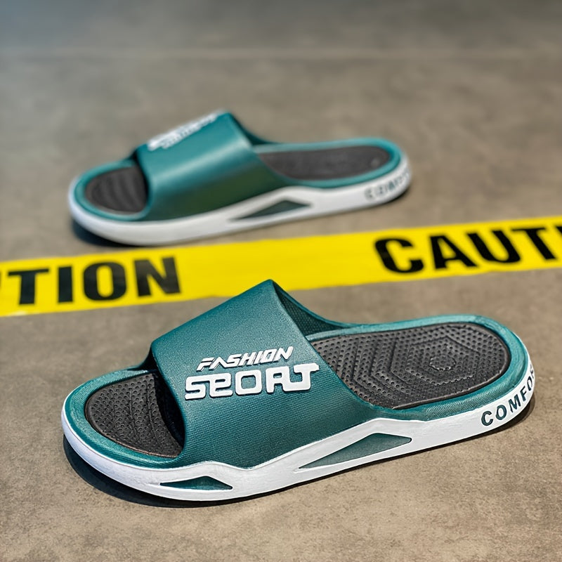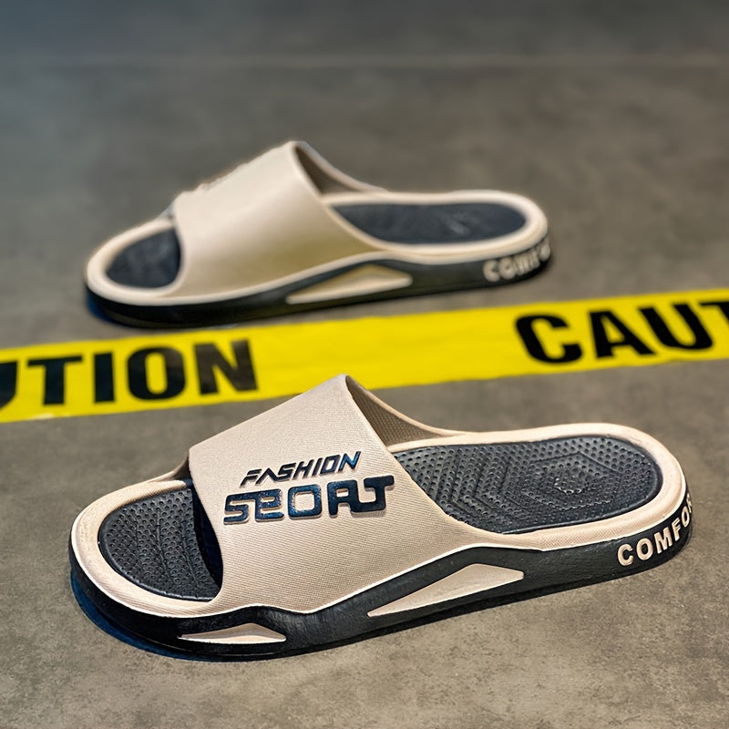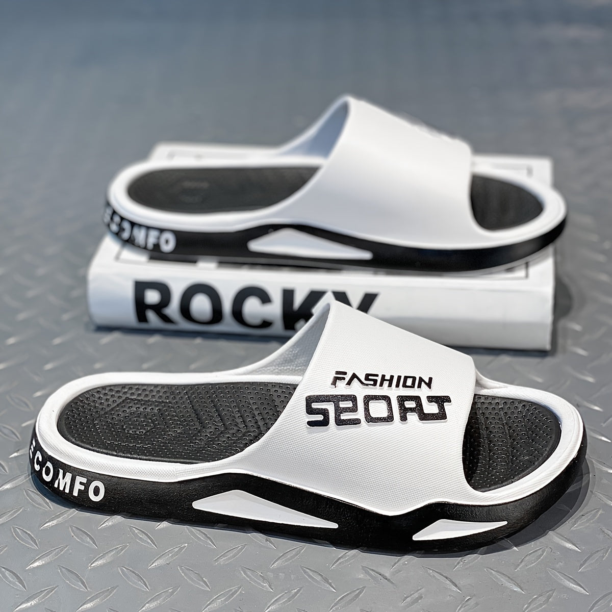 Men's Alphabet Print PVC Slides Non-Slip Indoor Outdoor Casual Summer
