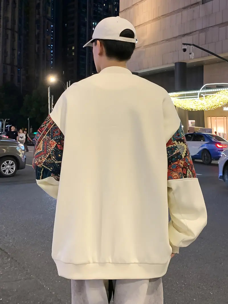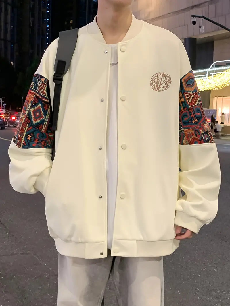 Men's Cotton Blend Embroidered Bomber Jacket with Floral Pattern for Casual Wear