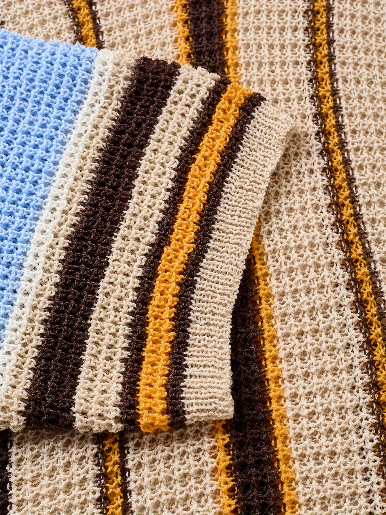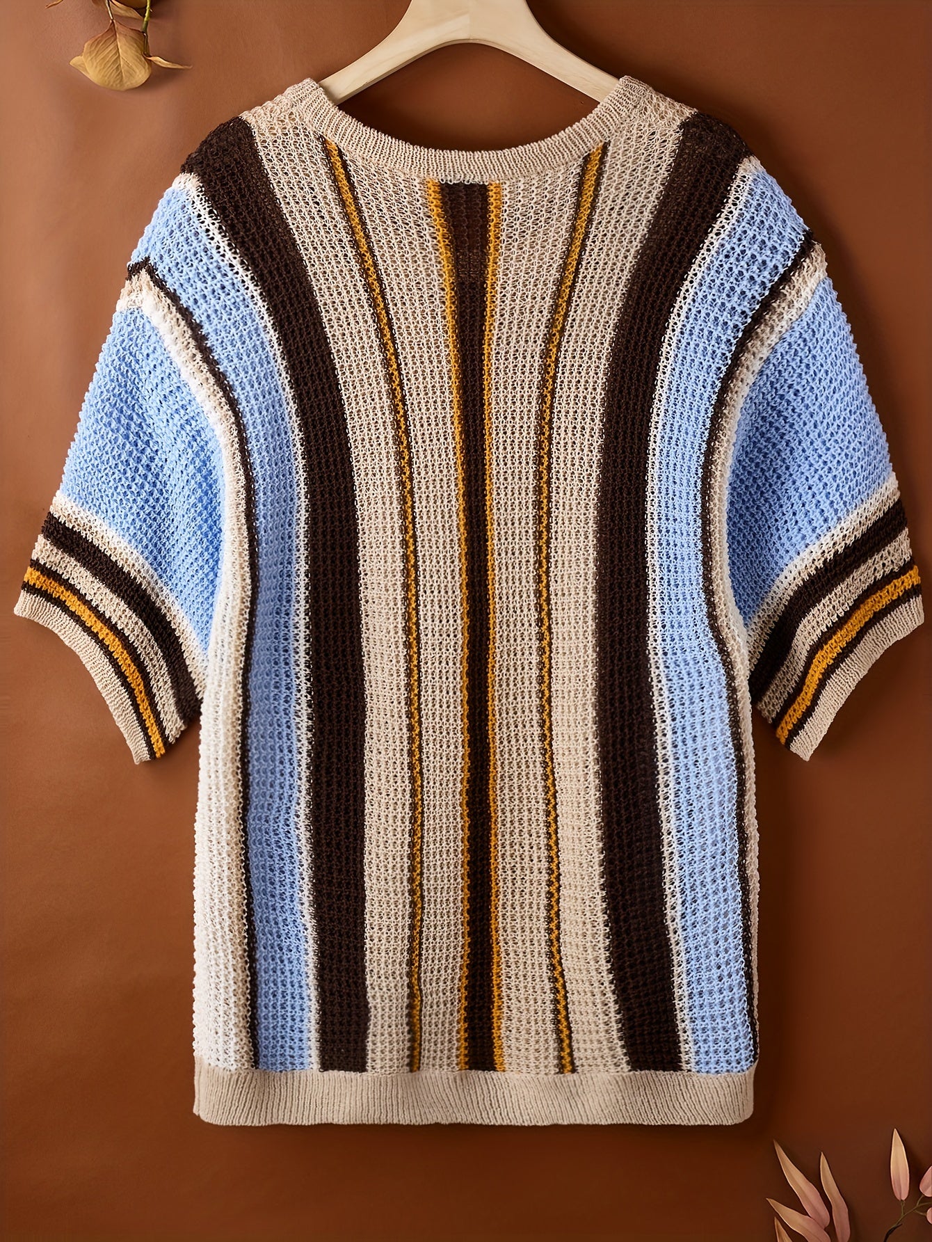 Men's Casual Knit Pullover Sweater Short Sleeve Crew Neck Micro-Elastic Ribbed Stripe Beach Vacation Style