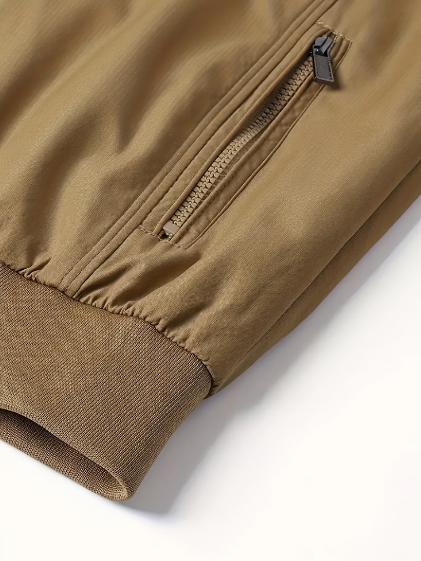 Men's Casual Polyester Fleece Jacket with Zipper Pockets Lapel Collar Windproof Regular Fit