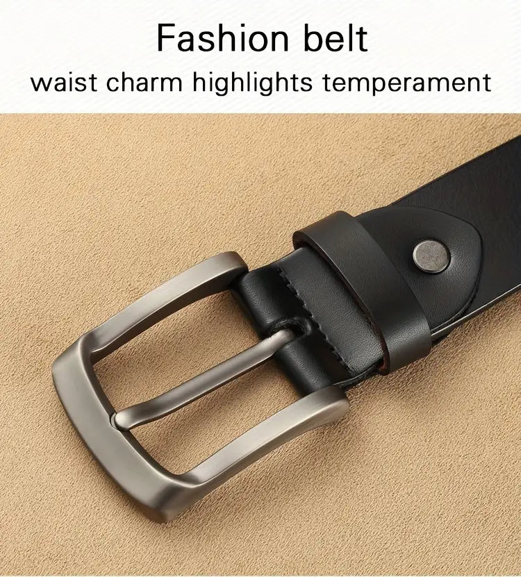 Men's Black Cowhide Leather Belt with Square Buckle for Valentine's Day