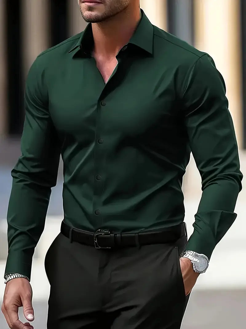 Men's Long Sleeve Button-Up Shirt Polyester Casual Solid Spring Fall Business Dress