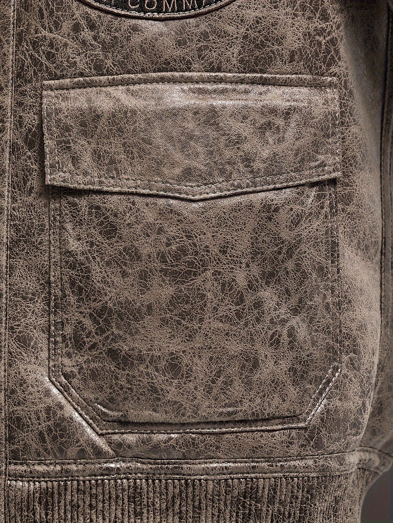 Men's Faux Fur Lined Biker Jacket with Applique Air Force Style Zipper Closure Fall Winter