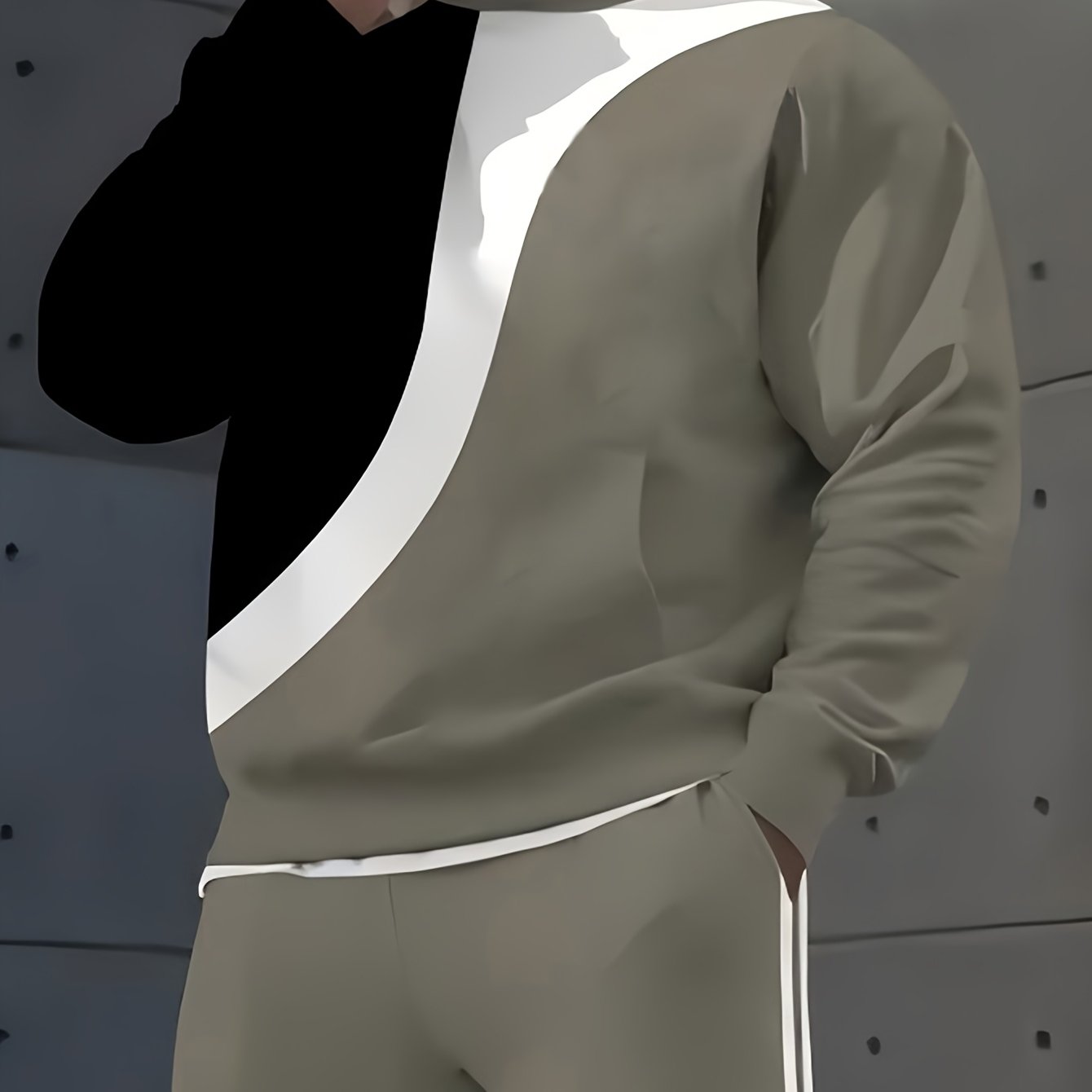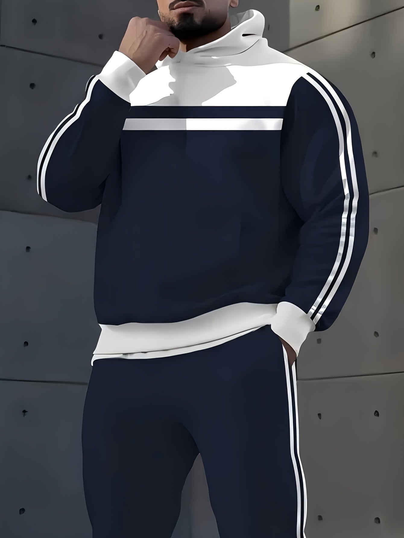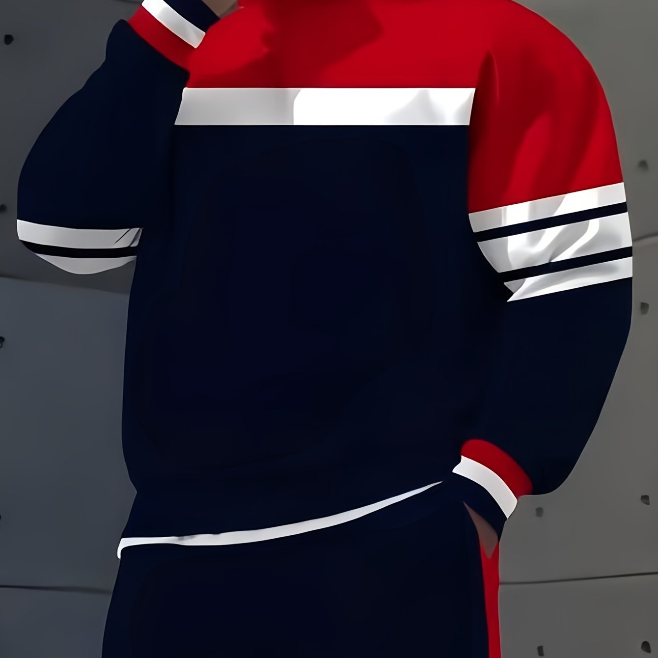Men's Harajuku Style Casual Hooded Sweatshirt Two-Tone Color Block Polyester Loose Fit Spring Fall Jogging