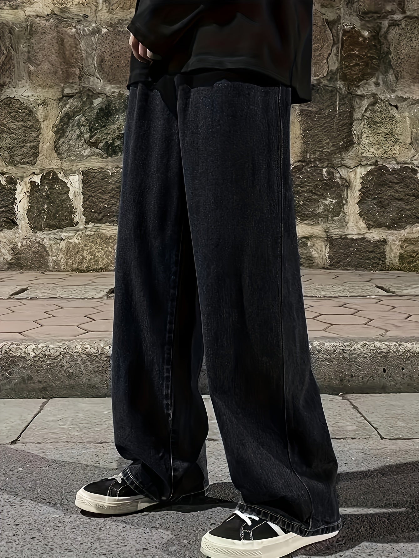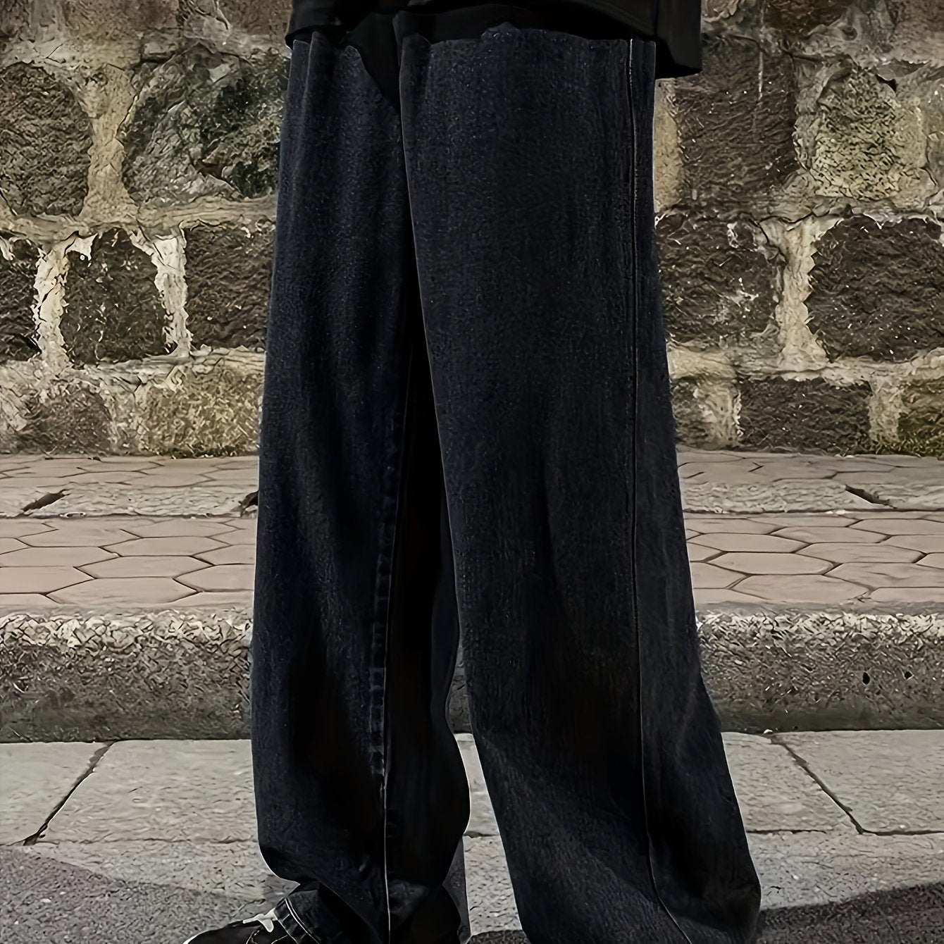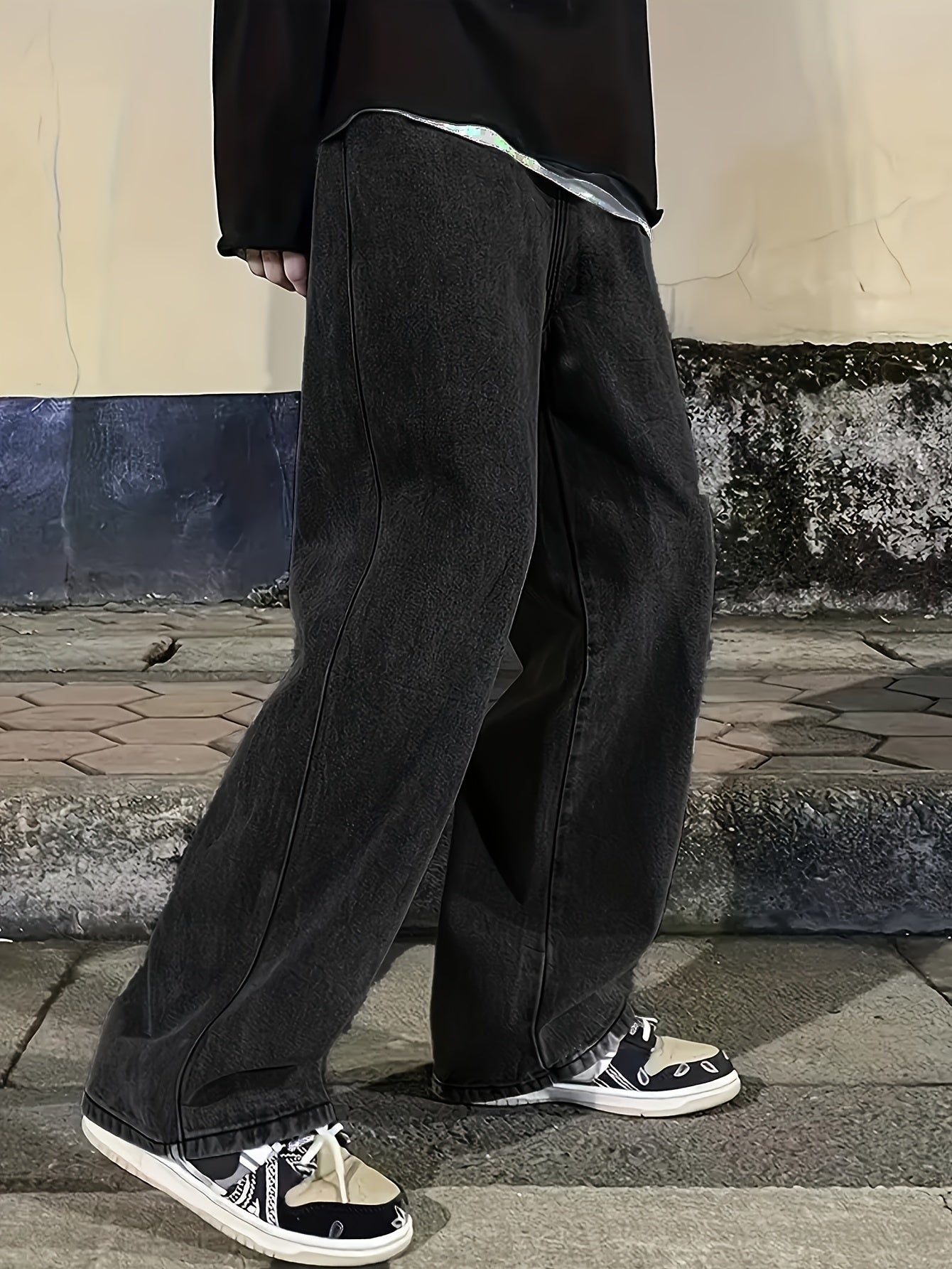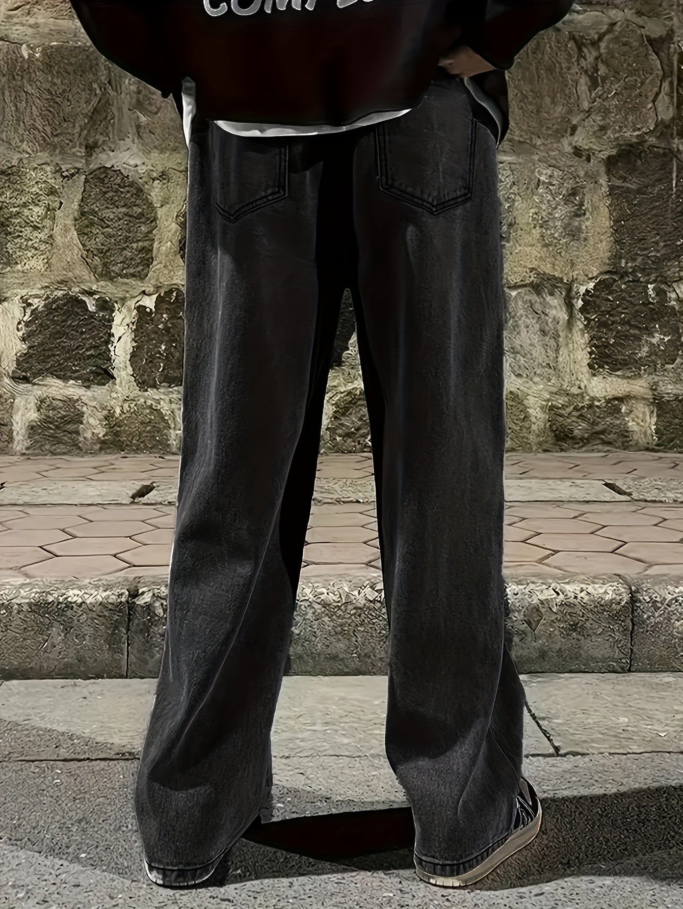 Men's Straight Leg Denim Jeans Casual Washed Mid-Length Solid Color Non-Stretch