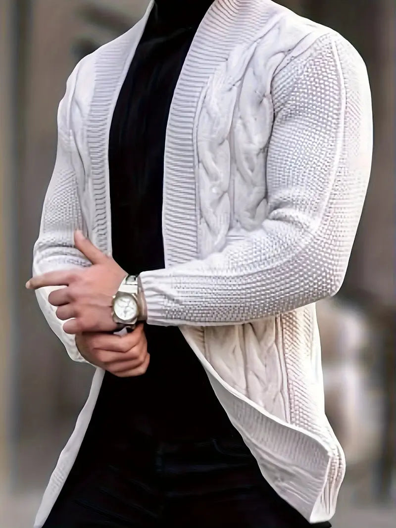 Men's Plus Size Cable Knit Cardigan Coat Long Sleeve Solid Color Fall Winter