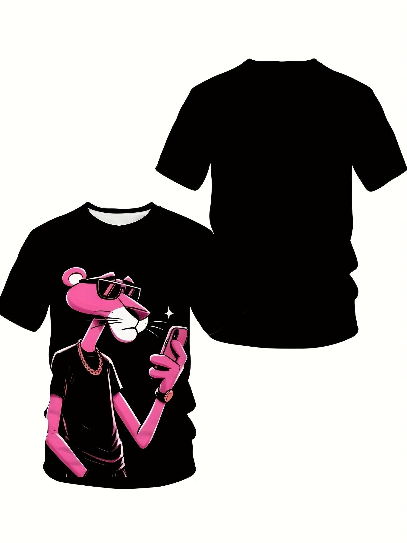Men's Plus Size Short Sleeve T-Shirt with 3D Pink Leopard Cartoon Animal Pattern Crew Neck Sports Casual