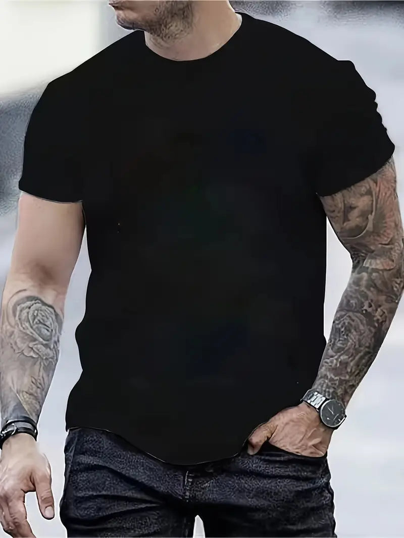 Men's Solid Color Crew Neck T-Shirt Summer Knit Polyester Spandex Regular Fit