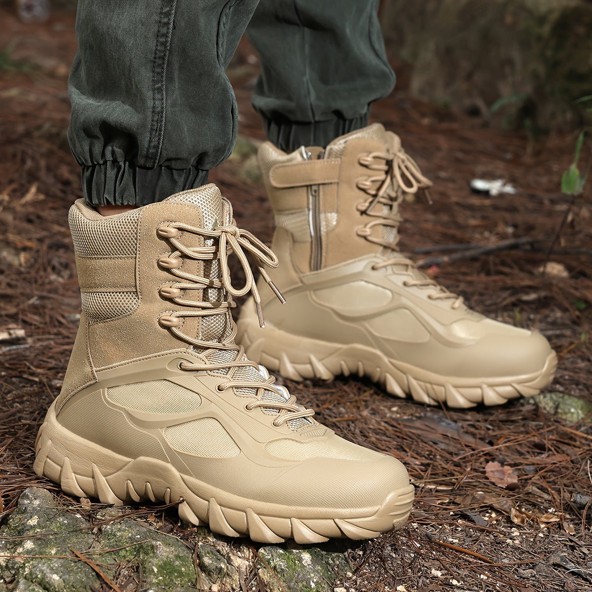Men's Tactical High-Top Boots Lightweight All-Season Sports Zipper Lace Closure