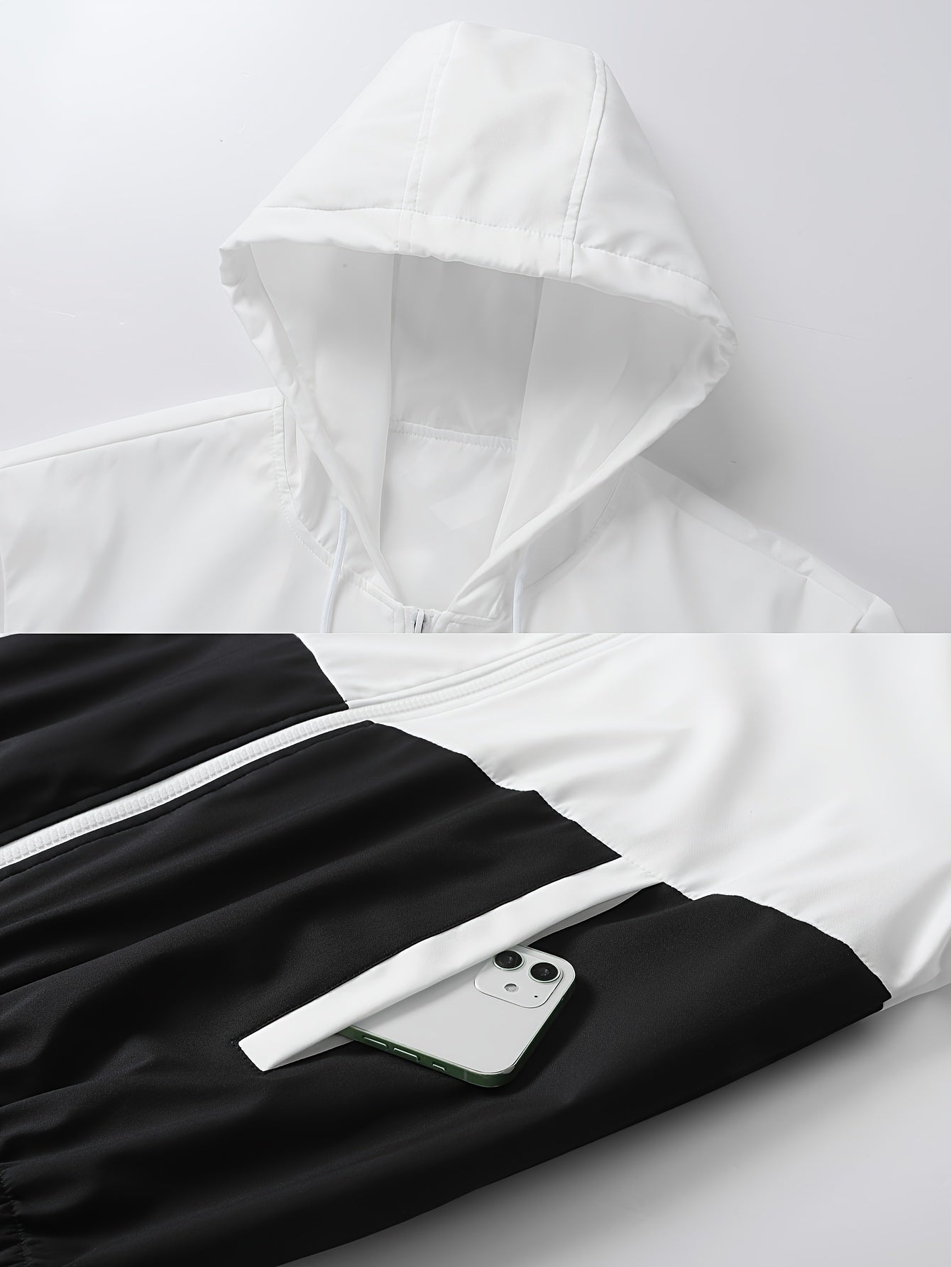 Men's Polyester Tracksuit Set Hooded Jacket and Long Pants Solid Color All Seasons