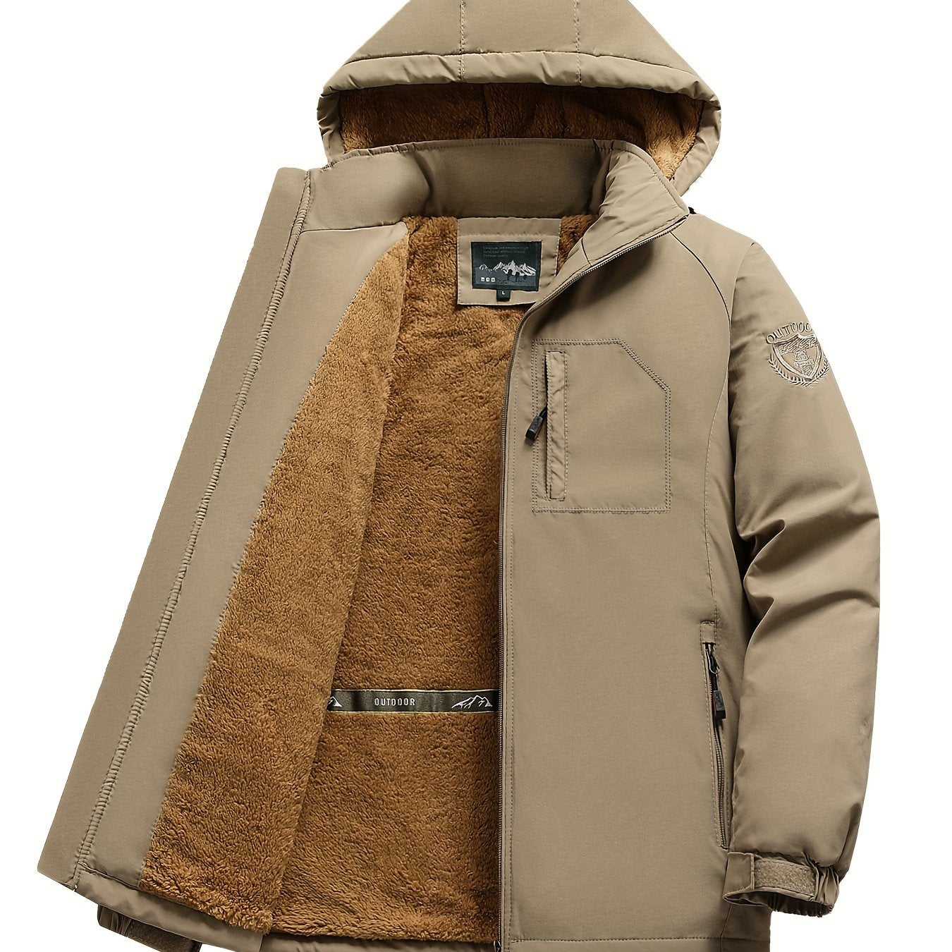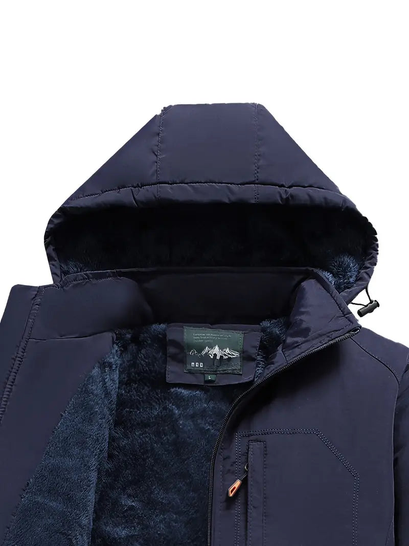 Men's Fleece-Lined Outdoor Jacket Hooded Zipper Pocket Casual Winter Mountaineering