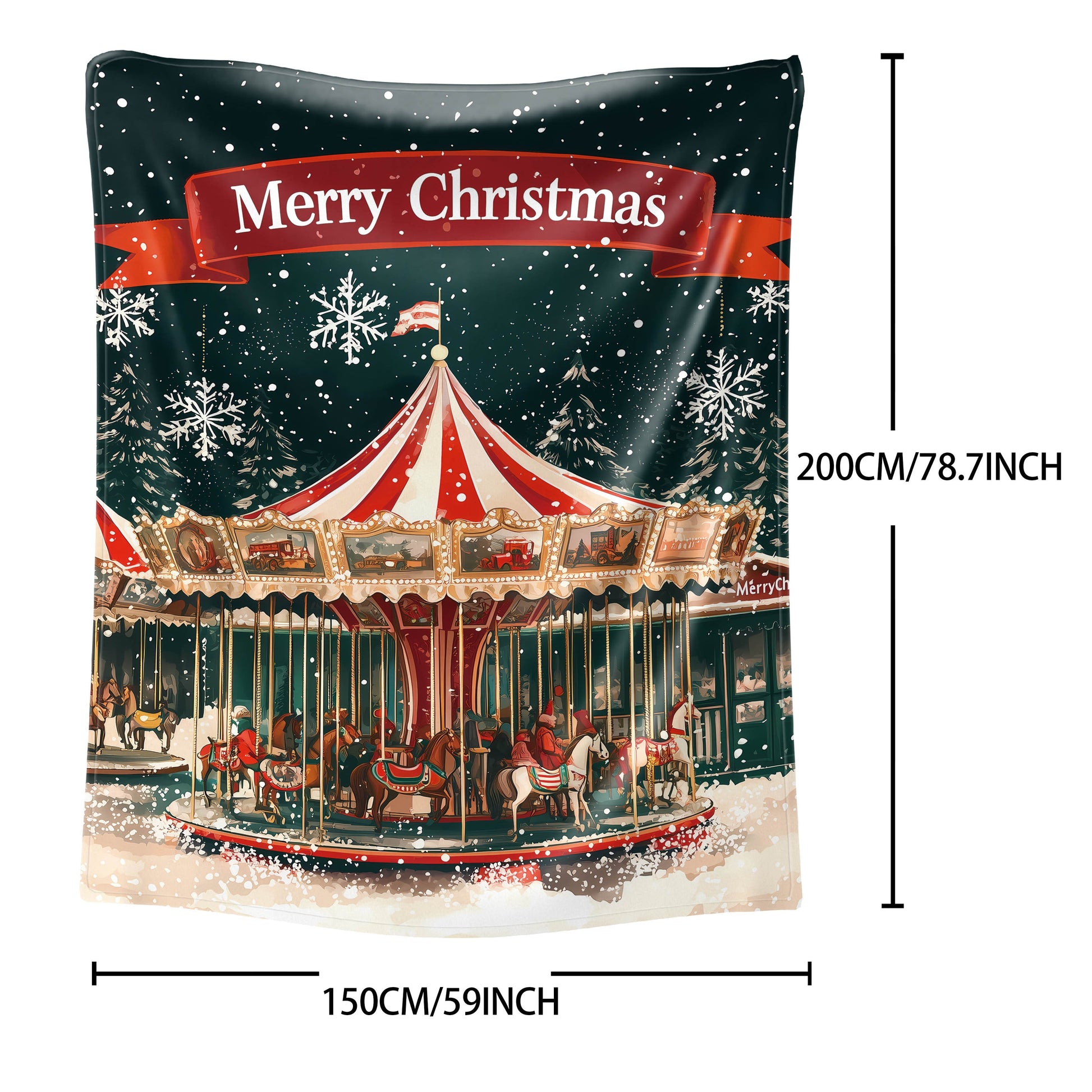 Merry Christmas Flannel Throw Blanket Polyester Knit Digital Print Light Cozy Sofa Bed Cover