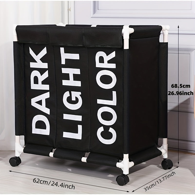 Large Waterproof Laundry Basket with 3 Compartments on Wheels for Home Organization