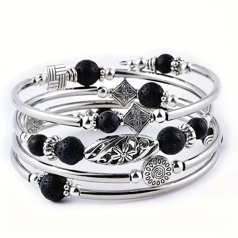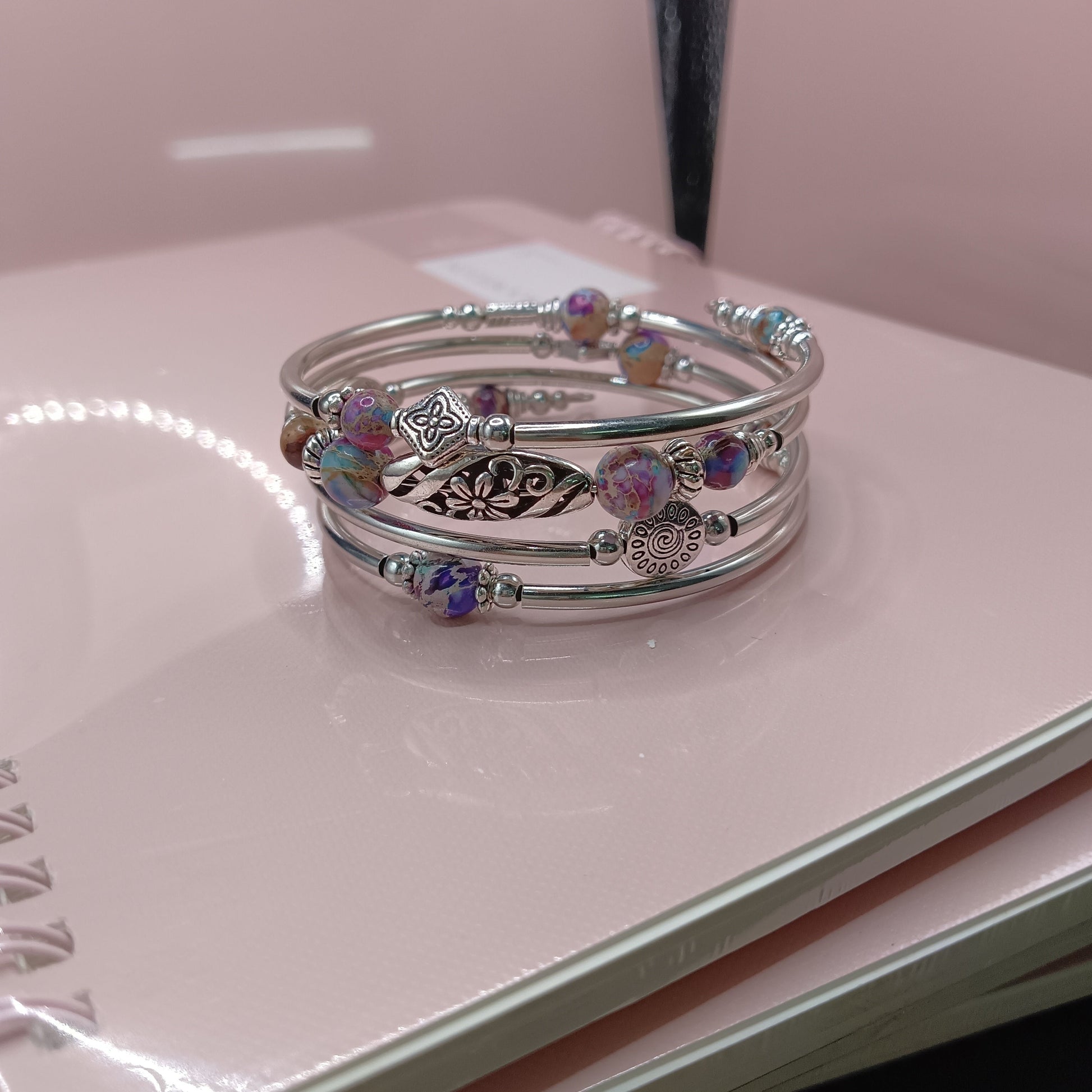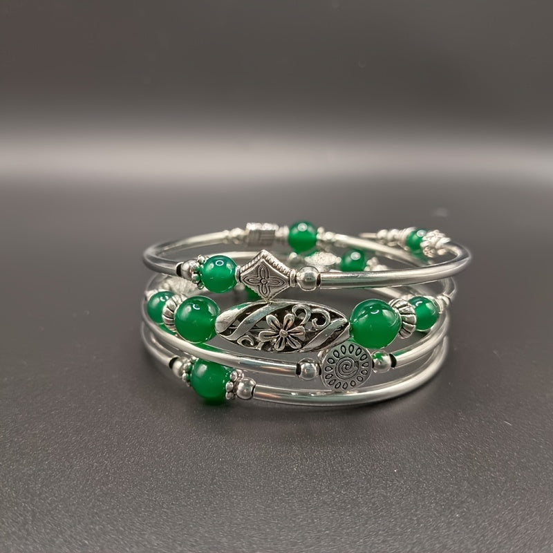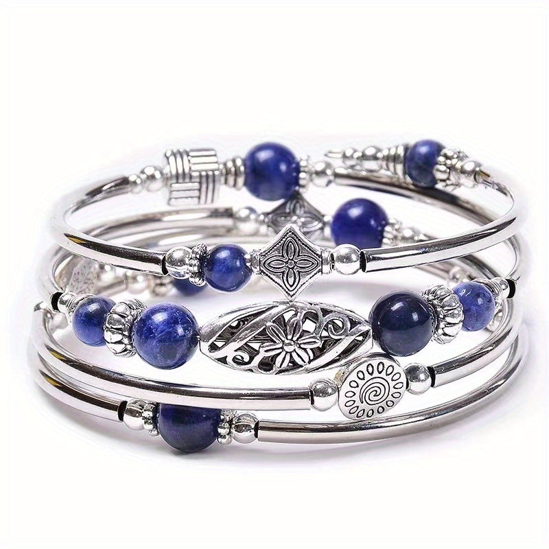Bohemian Style Multi-Layered Crystal Bracelet with Turquoise Tiger's Eye Stones