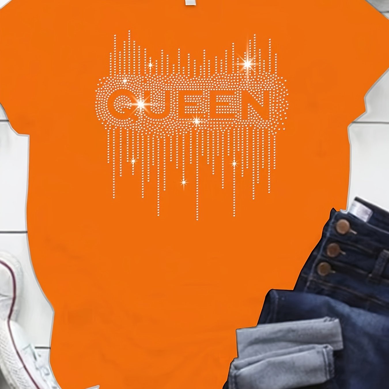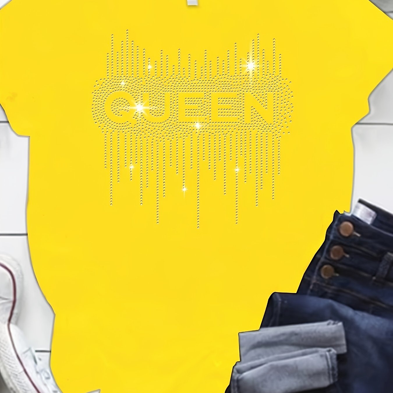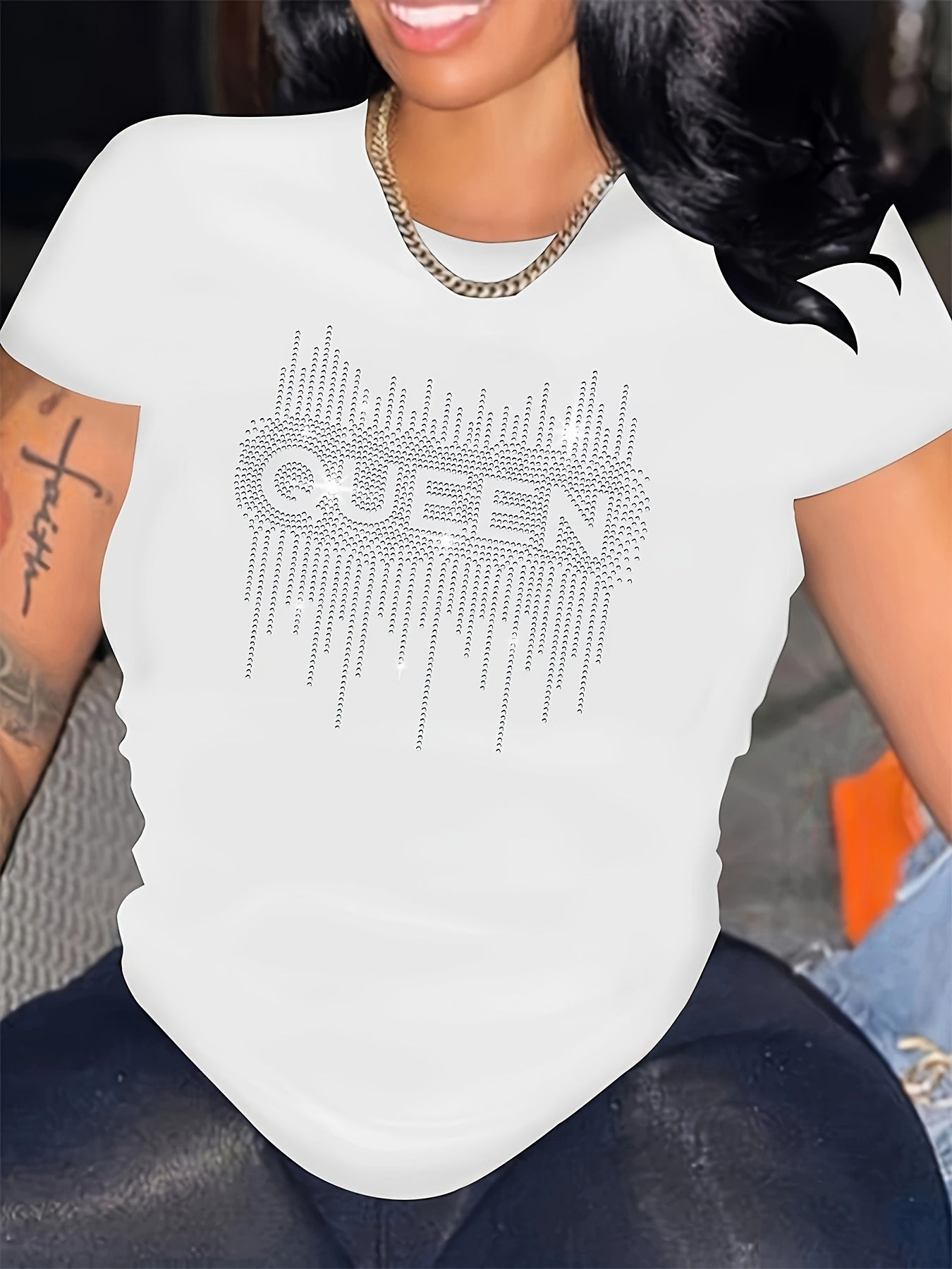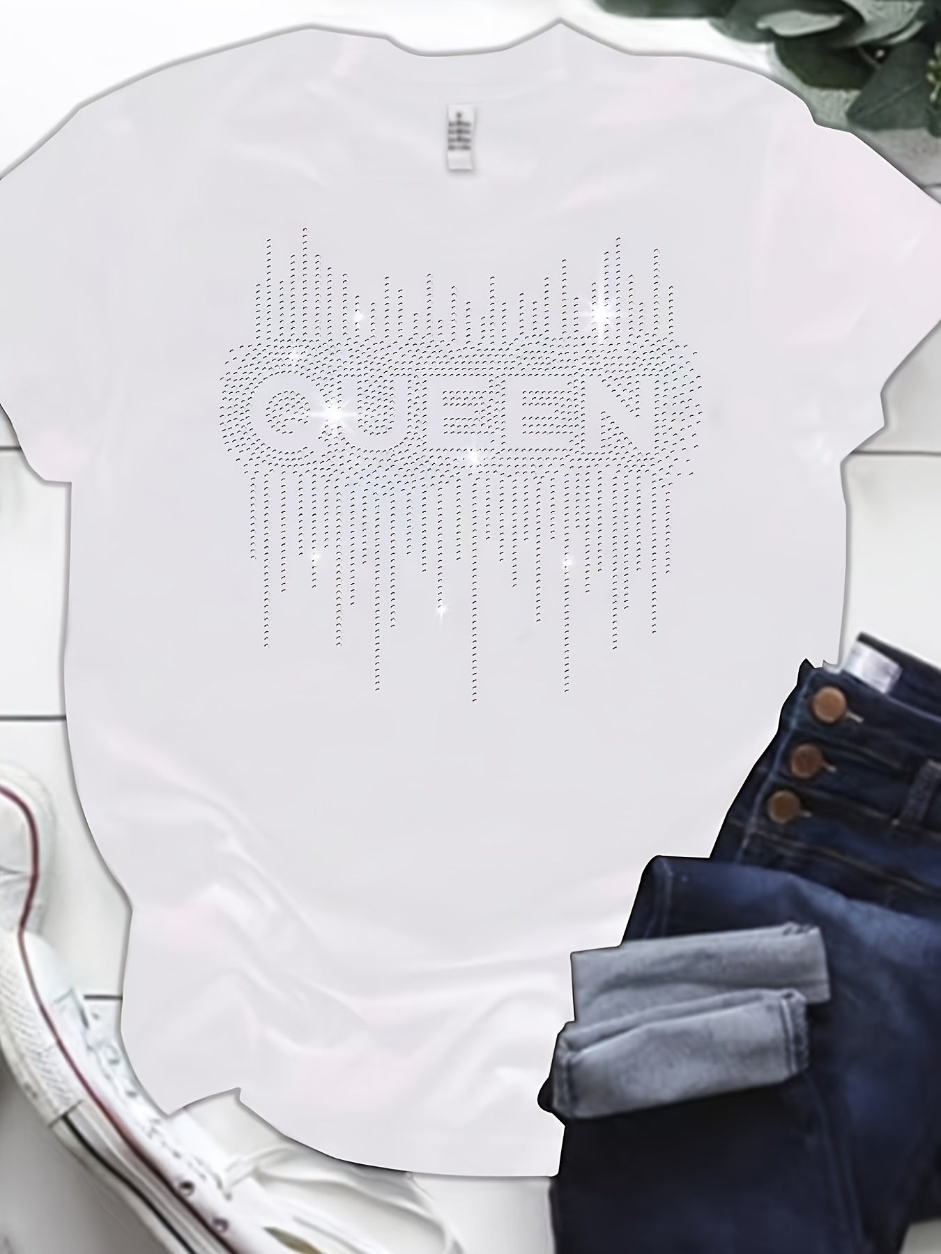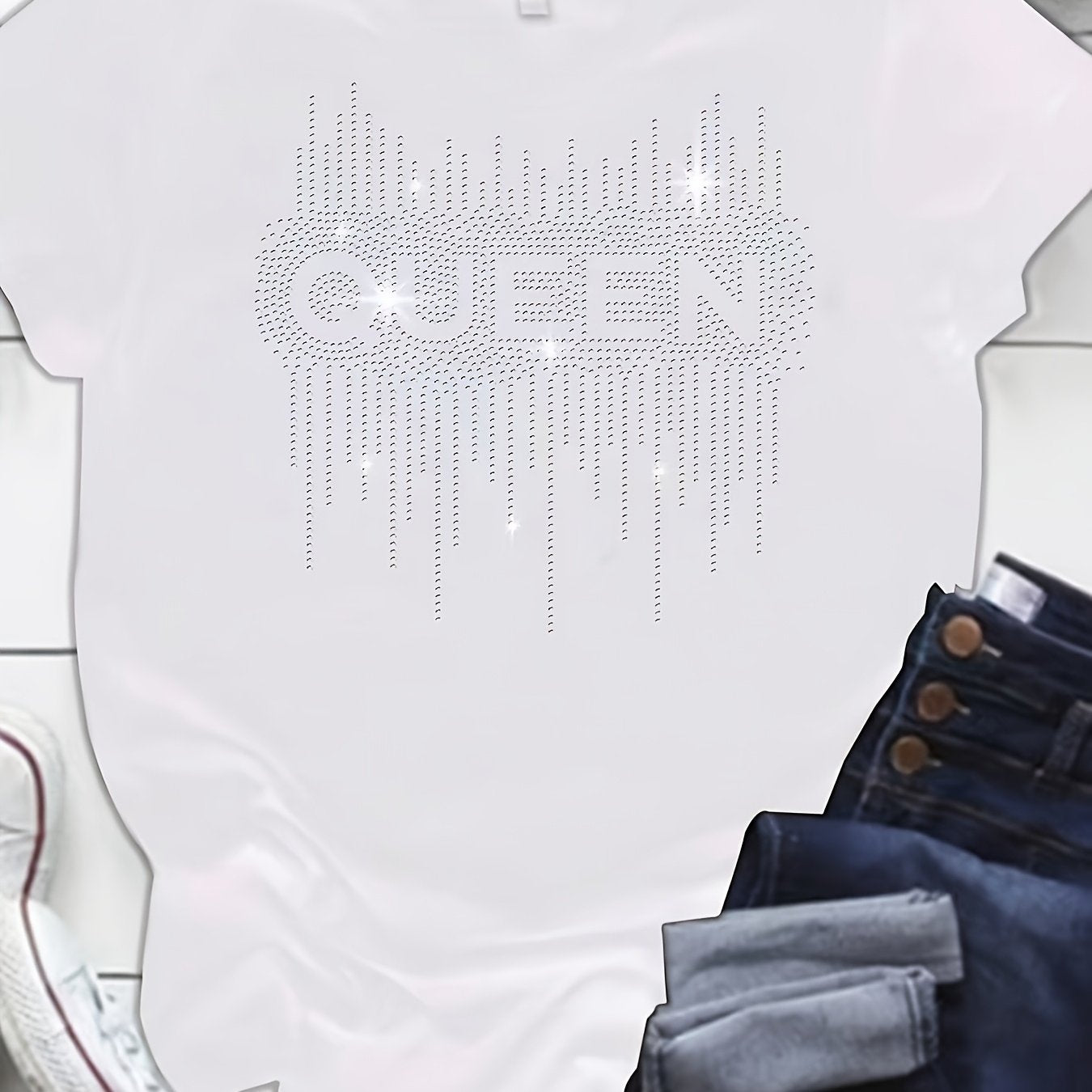 Plus Size Black Diamond Print T-Shirt with Half Sleeves Crew Neck Loose Fit for Women