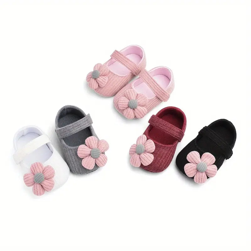Newborn Baby Girl and Boy Plush Slippers with Flowers Pattern All-Season Fabric Non-Slip Warm Shoes