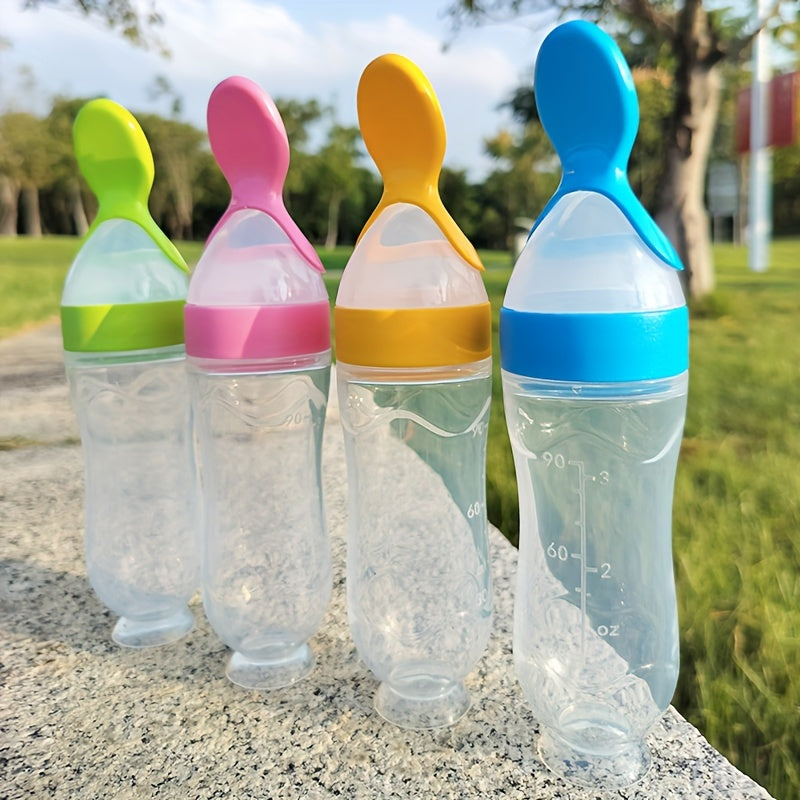 Baby Food Feeder Set with Silicone Bottles Spoons Suction and Rice Paste Spoon
