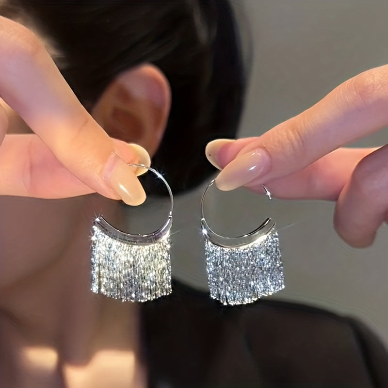 C-Shaped Tassel Earrings for Women Gold Plated Dangle Jewelry