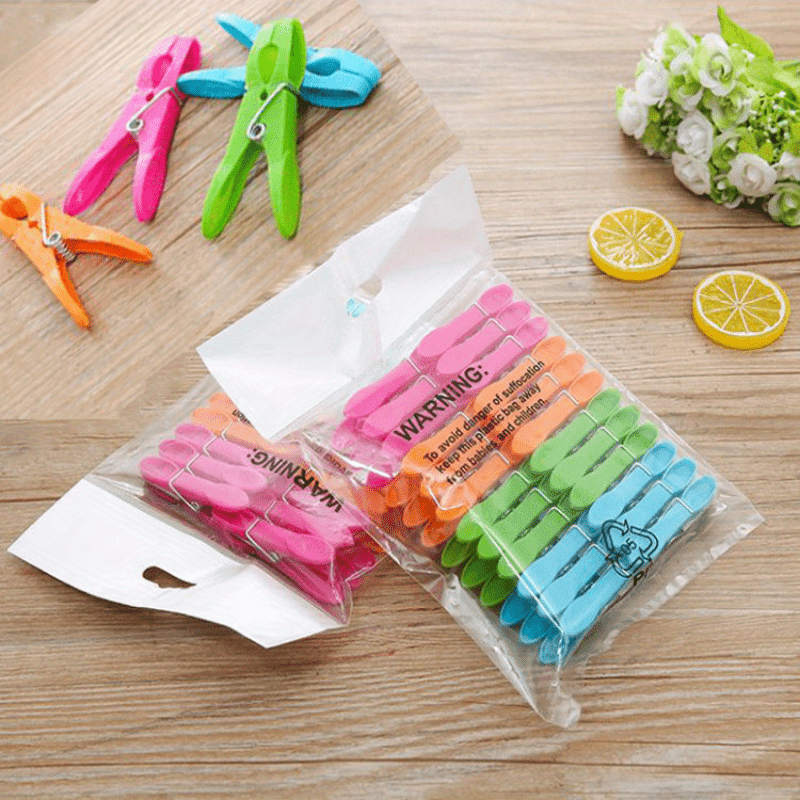 Pack of 24 Colorful Plastic Clothespins with Springs for Air-Drying Laundry