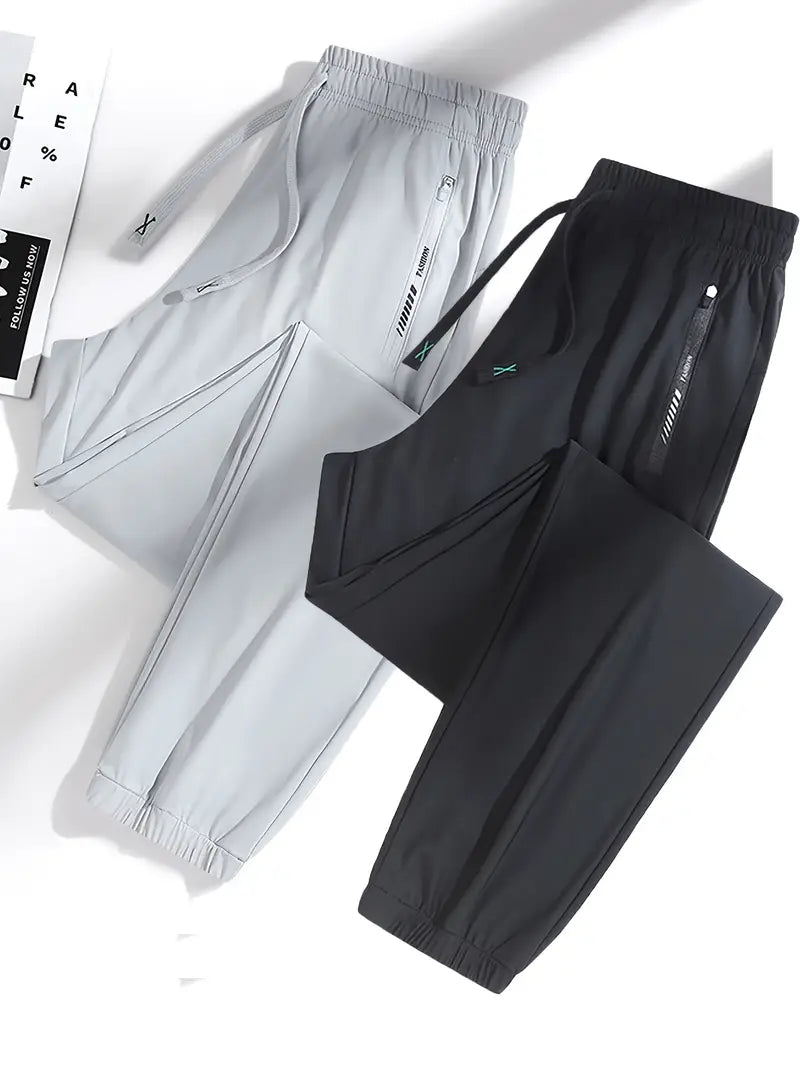 Women's Summer Sports Long Pants Tapered Joggers with Elastic Waist and Zipper Pockets