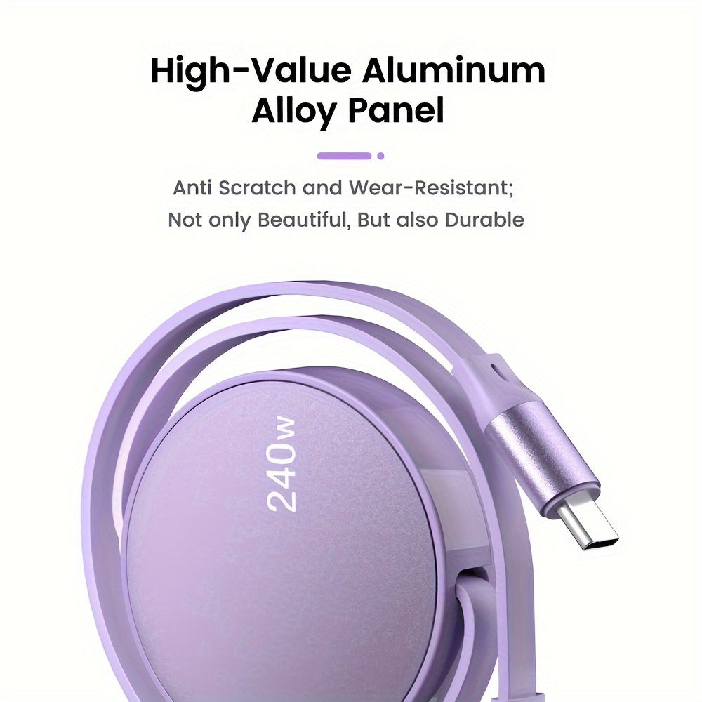 240W Fast Charging TypeC Dual Head Retractable Data Cable for Laptop and Mobile Phones 1m
