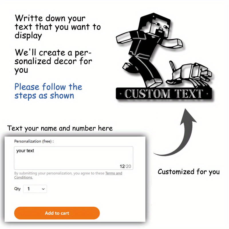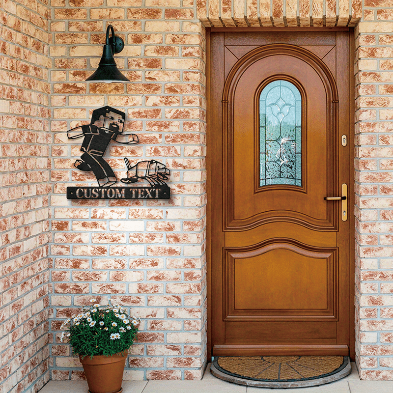 Black Metal Wall Art with Gaming Character Cutout for Home Office Garden Patio Decor