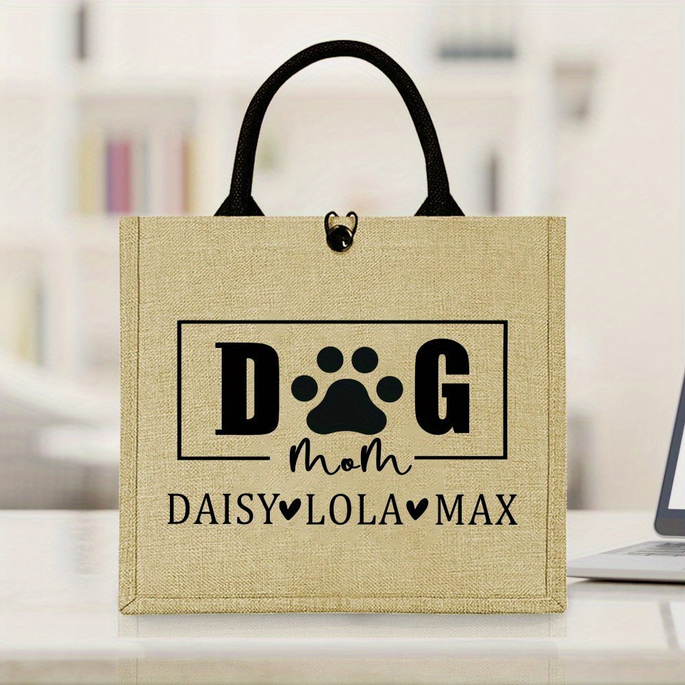 Personalized Dog Mom Tote Bag Jute Pet Lover Gift with Durable Shoulder Strap