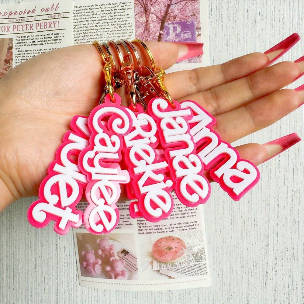 Personalized Floral Pattern Acrylic Keychain Double Layer Letter Keyring with Split Ring Gold Silver Rose Gold Back-to-School Gift