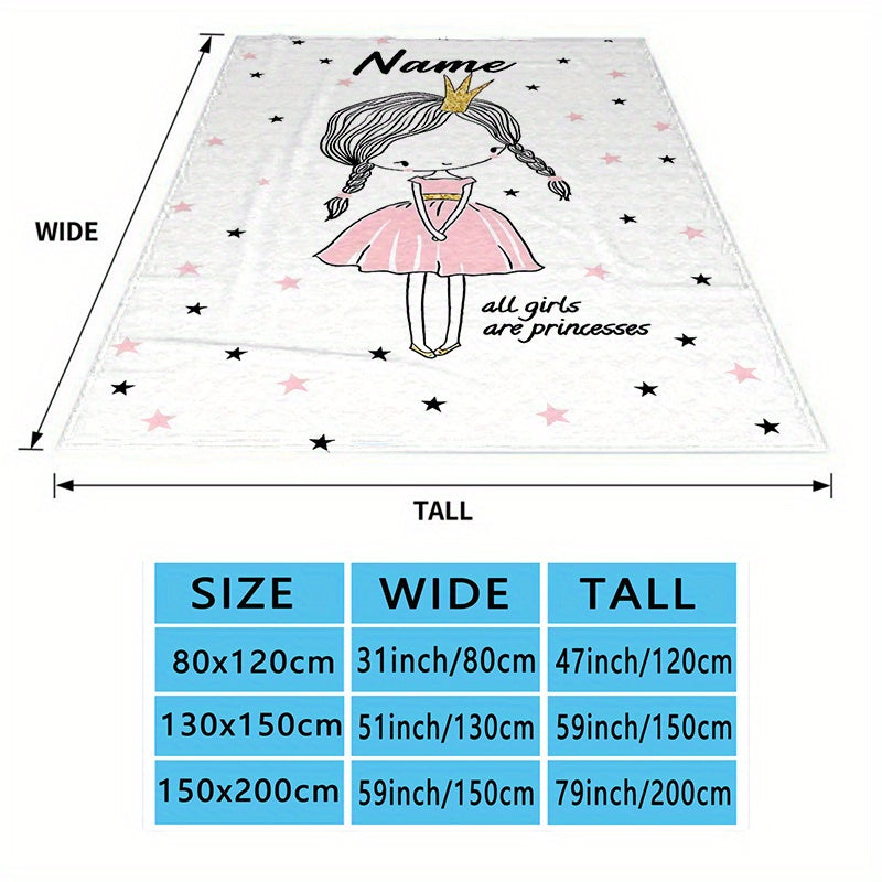 Personalized Soft Blanket with Custom Name Print, Princess Design, for Bed Sofa or Chair