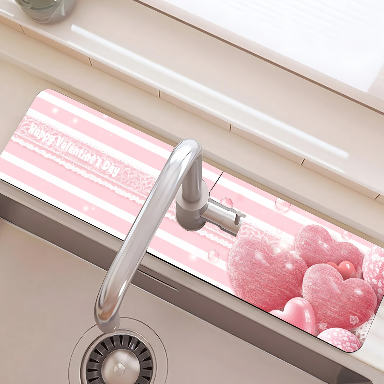 Pink Striped Love Faucet Mat Moisture-Proof Absorbent Kitchen Bathroom Drain Pad