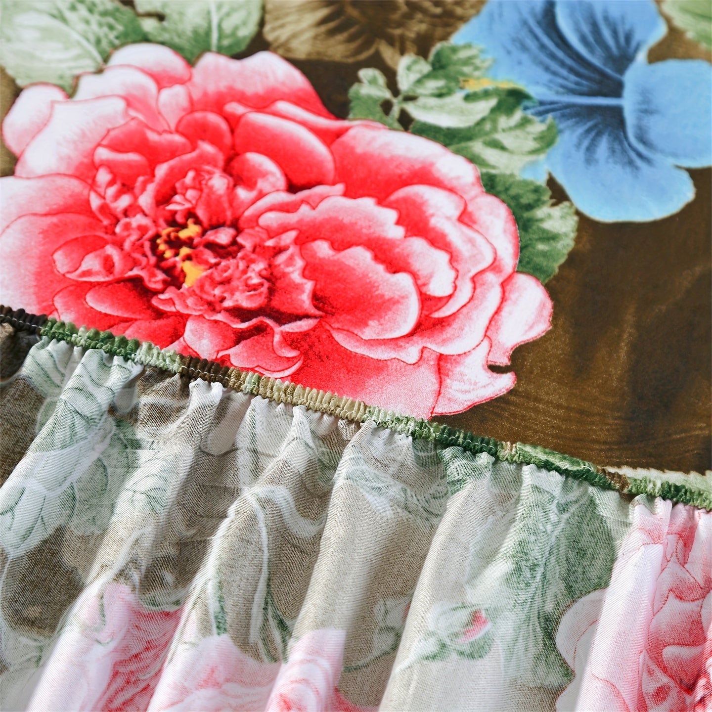 Floral Print Bedding Set with Fitted Sheet and Pillowcases for Bedroom and Guest Room