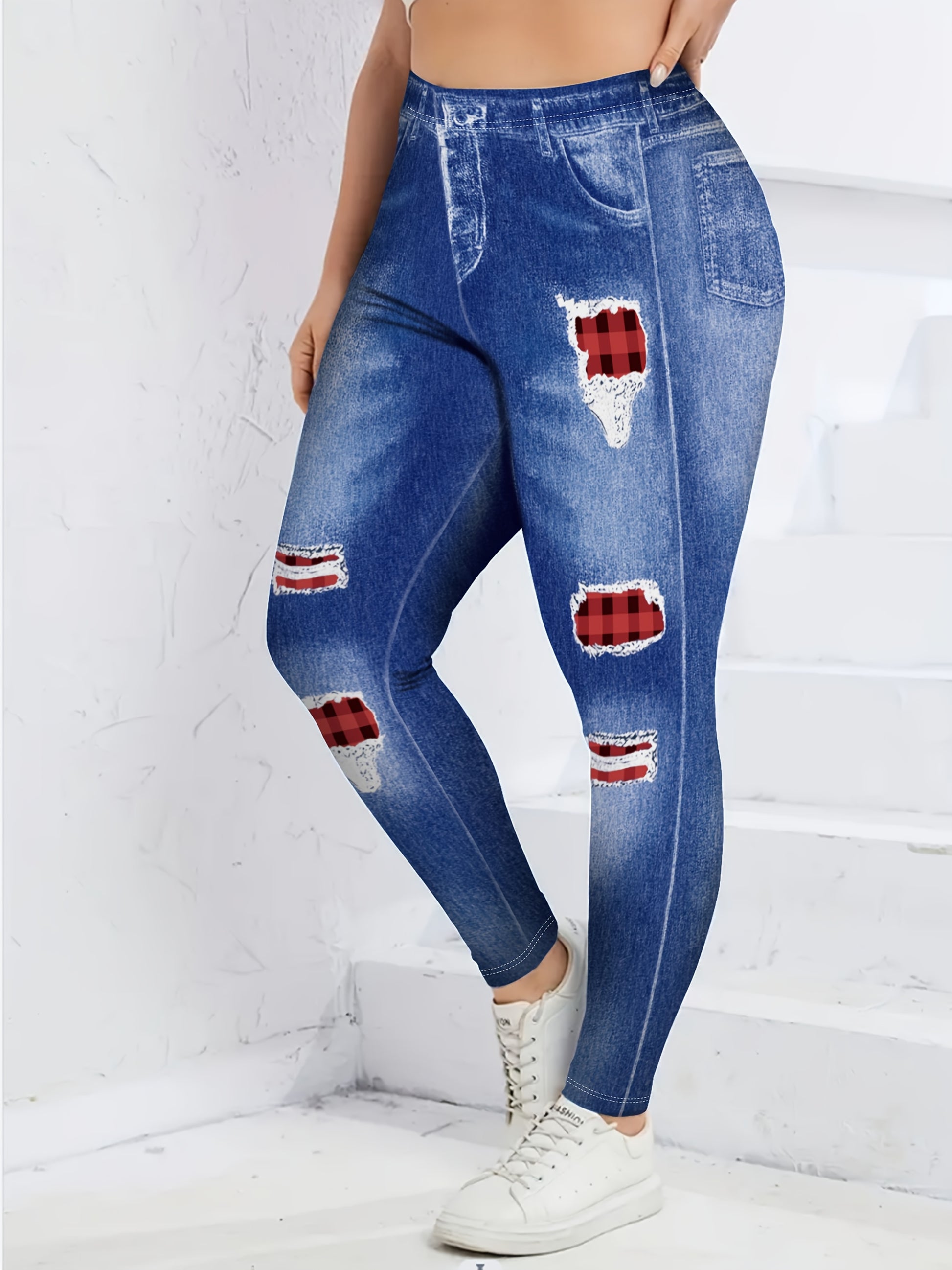 Plus-Size Digital Print Skinny Jeans Casual No Pockets Base Layer