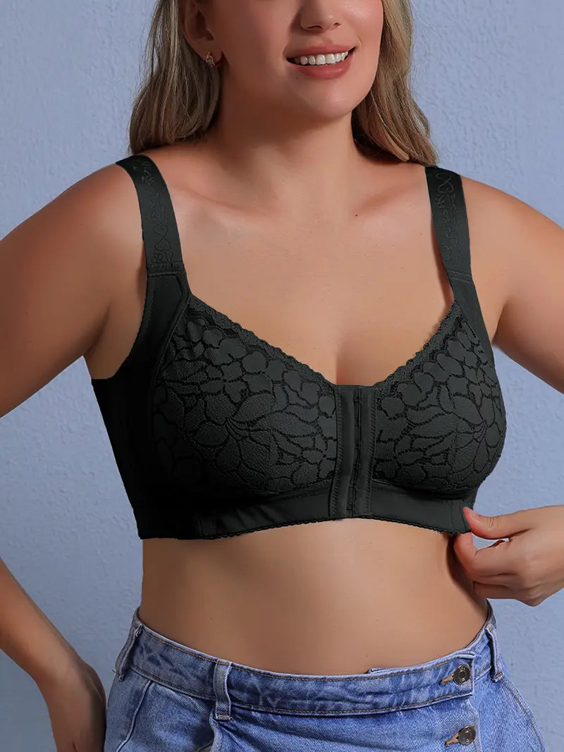 Plus Size Floral Lace Bralette for Women Full Support Breathable Knit Fabric No Padding