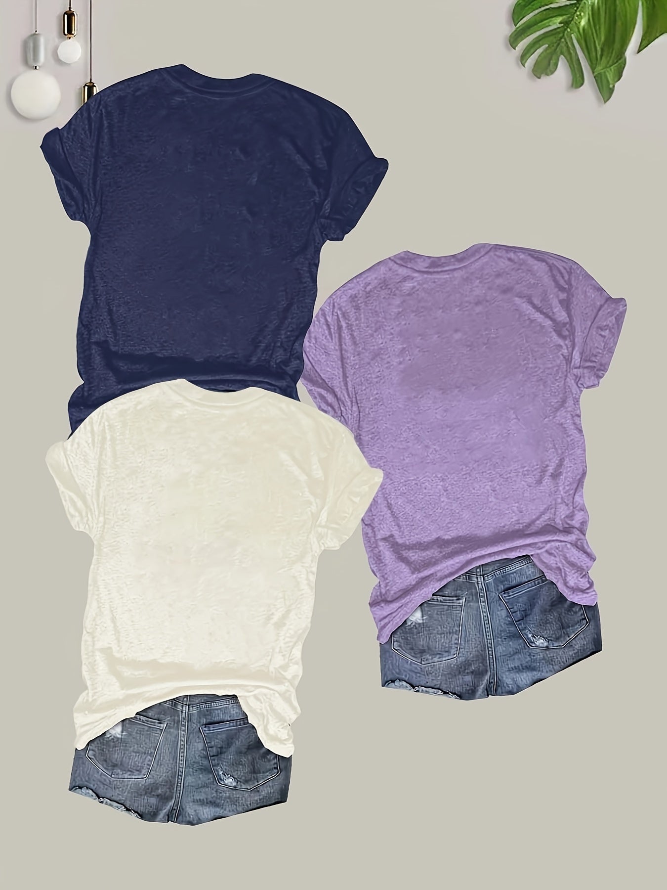 Plus Size Floral Print T-Shirts Pack of 3 Casual Crew Neck Polyester Knit Summer