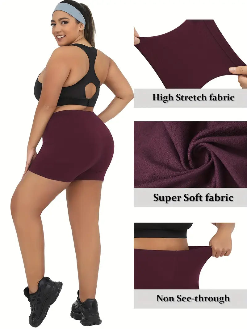 Plus Size High-Waist Biker Shorts for Women Yoga Running Blue
