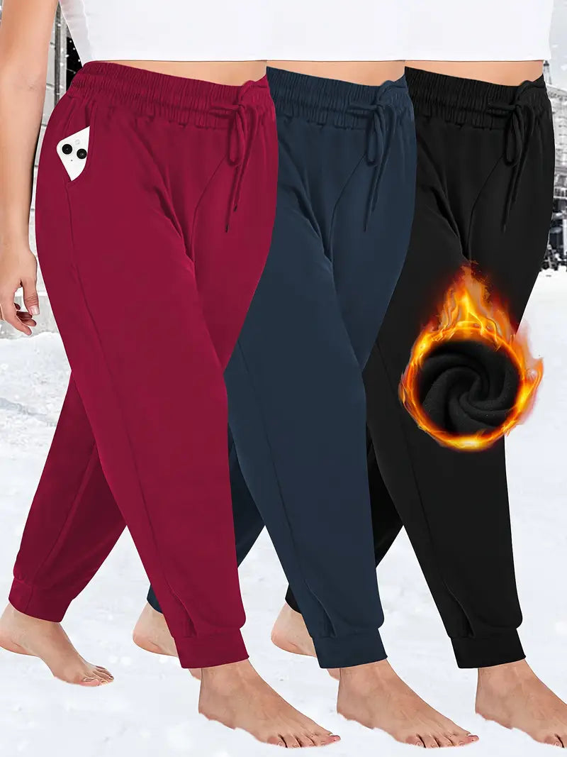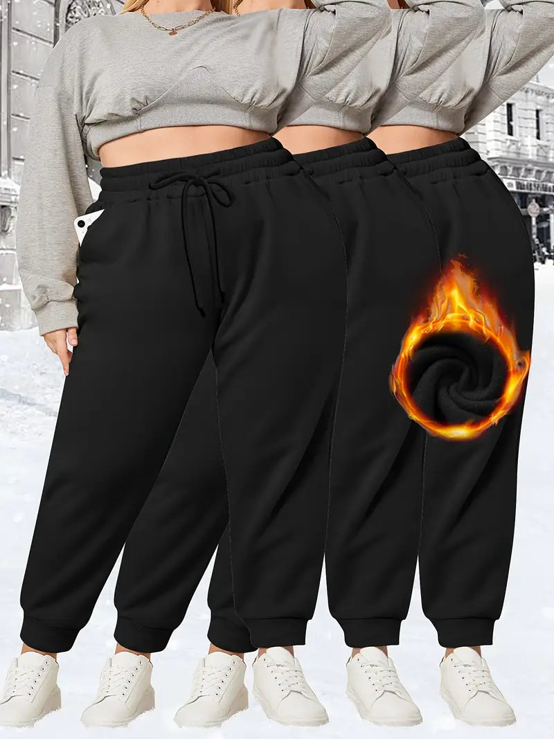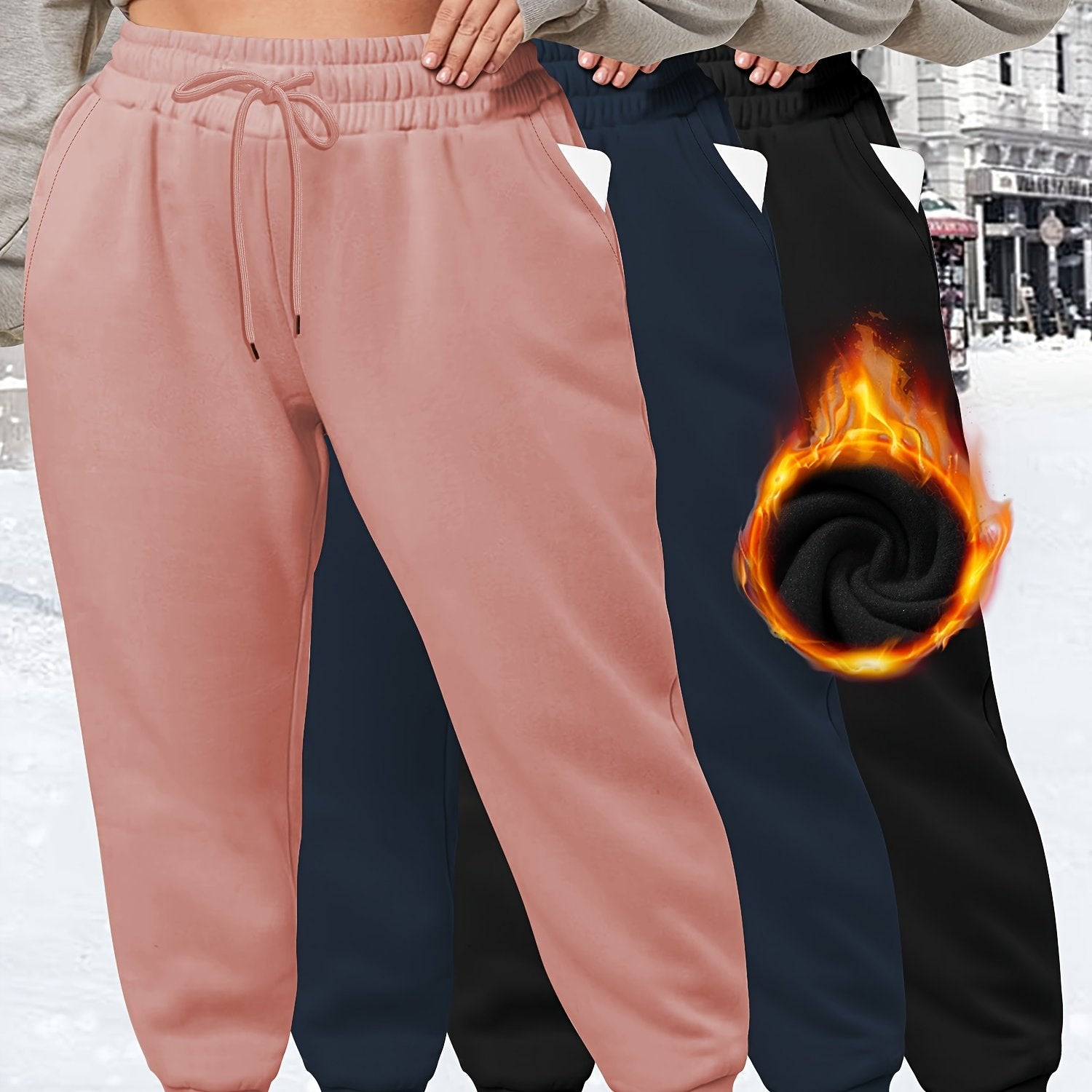 Plus Size Jogger Pants 3 Pack High Stretch Drawstring Waist Solid Cold Weather